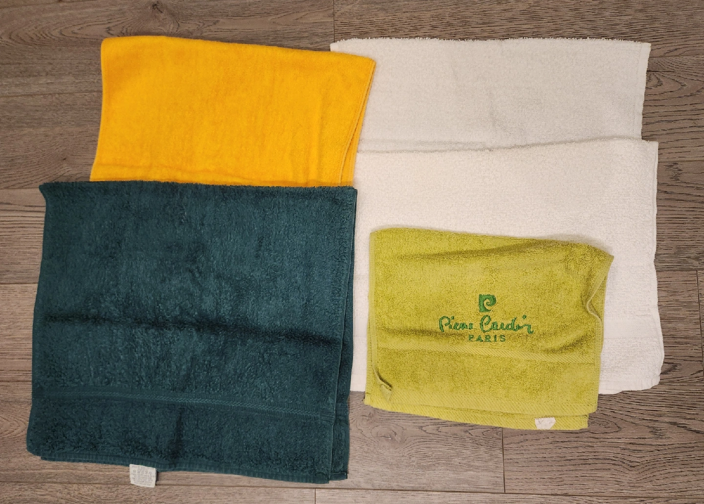 Selling a set of Pierre Cardin towels in a variety of colours! The set includes towels in green, yellow, and white. The green one is for floor and rest of them are bath towels. They're in great condition and ready for a new home