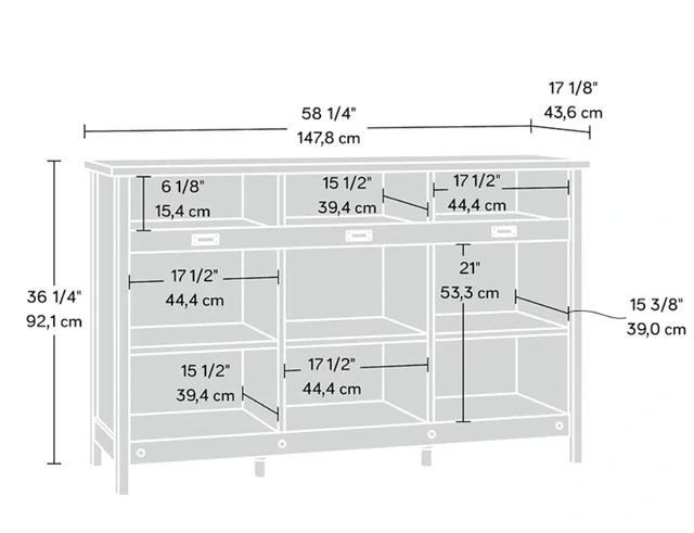 Brand New Credenza/Cabinet. It comes unassembled in original box with all manufacturer parts and hardware for easy assembly. Retails at Canadian Tire for $508 ($450 + tax). Save your money Pickup from south London. I can deliver in London and surrounding area for an extra fee. Sauder Adept 58 Inch Open Storage Credenza Cabinet Sideboard in Soft White Finish Product details: Brand: Sauder Model: 417653 Colour: Soft White Recommended uses for product: Storage Product Dimensions: 147.8D x 43.6W x 92.1H Centimetres Weight: 130.1 lbs (59 kg) Special feature: Shelves Mounting type: Freestanding Enhance any room with this attractive and versatile storage credenza. The cube storage style offers multiple shelves for tucking away baskets and other household items. Features of this storage furniture include: Cubbyhole storage for books, binders, framed photos, collectibles, and more. Accommodates ID label tags for personalized organization. Three adjustable shelves for flexible storage options. Soft White finish with Lintel Oak accent.