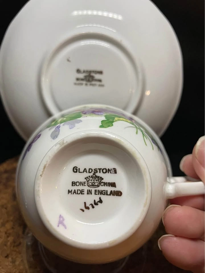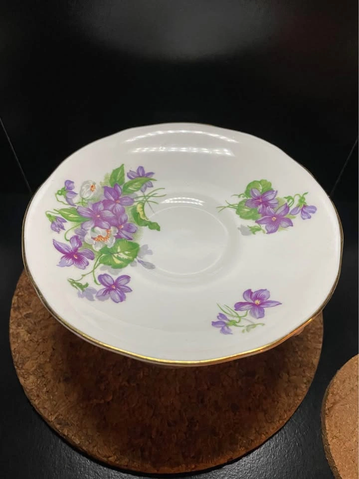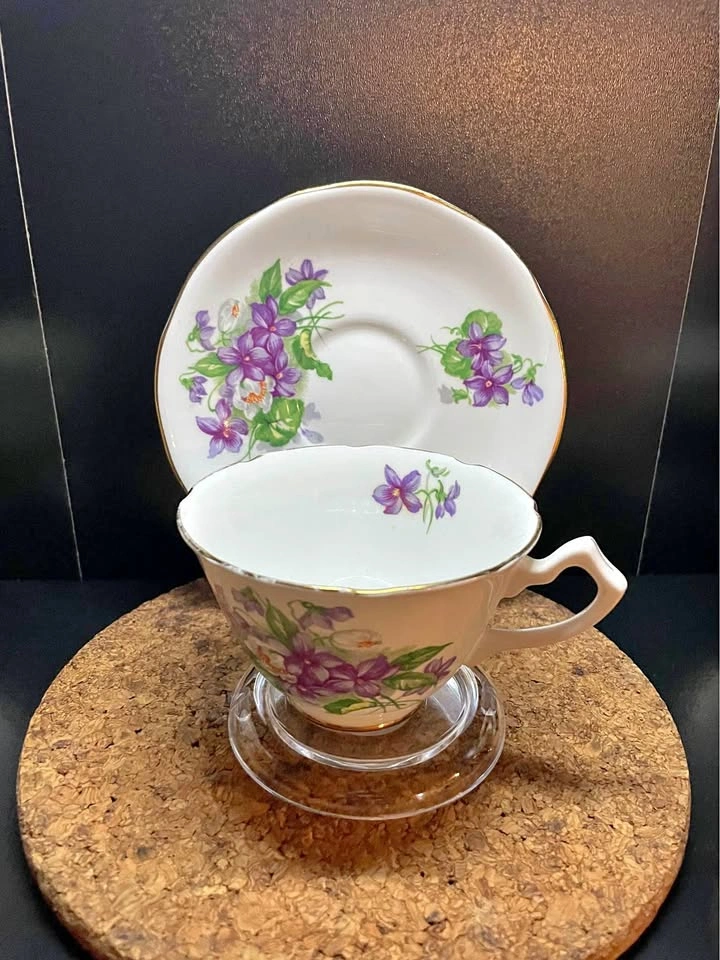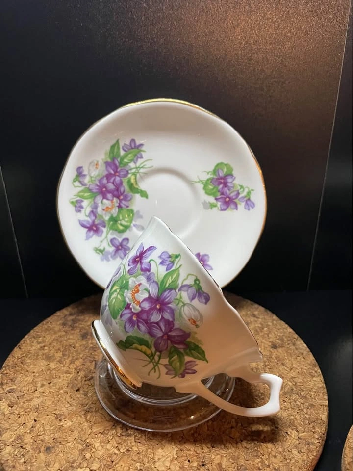 Vintage, Gladstone Bone China, Made In England Purple Floral Gold Teacup and Saucer Set