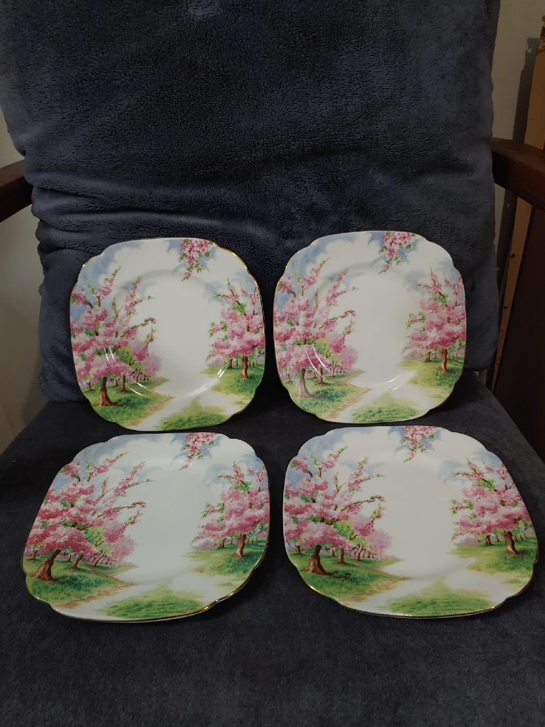 315Selling a set of four Royal Albert 'Blossom Time' Bone China Made in England Plates! They feature a lovely design with pink blossoms and a scenic pathway. Perfect for adding a touch of elegance to your dining experience or as a decorative piece, $20 each