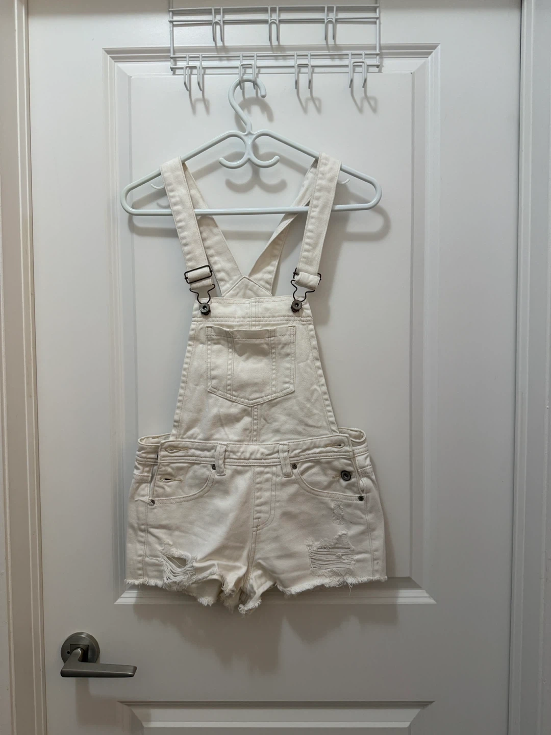 Cute Forever 21 denim overalls in a cream/off-white colour! They're a size 25 and in great condition. Perfect for a casual summer look