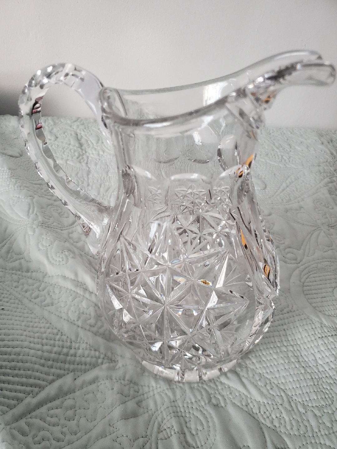 Beautiful crystal pitcher with a starburst pattern, perfect for serving drinks or as a decorative piece