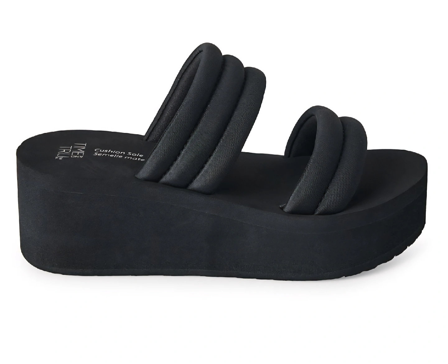 Comfy and stylish Time and Tru black platform sandals! These sandals feature a cushion sole for extra comfort. Perfect for everyday wear!