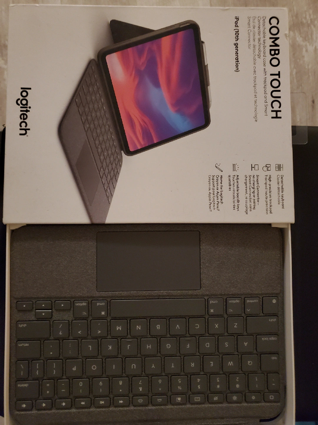 Selling a Logitech Combo Touch keyboard case with trackpad and Smart Connector technology for the iPad (10th generation) - Detachable keyboard - High-precision trackpad - Smart Connector: no charging or pairing - Adjustable backlit keys - Home for Logitech Crayon or Apple Pencil Box included