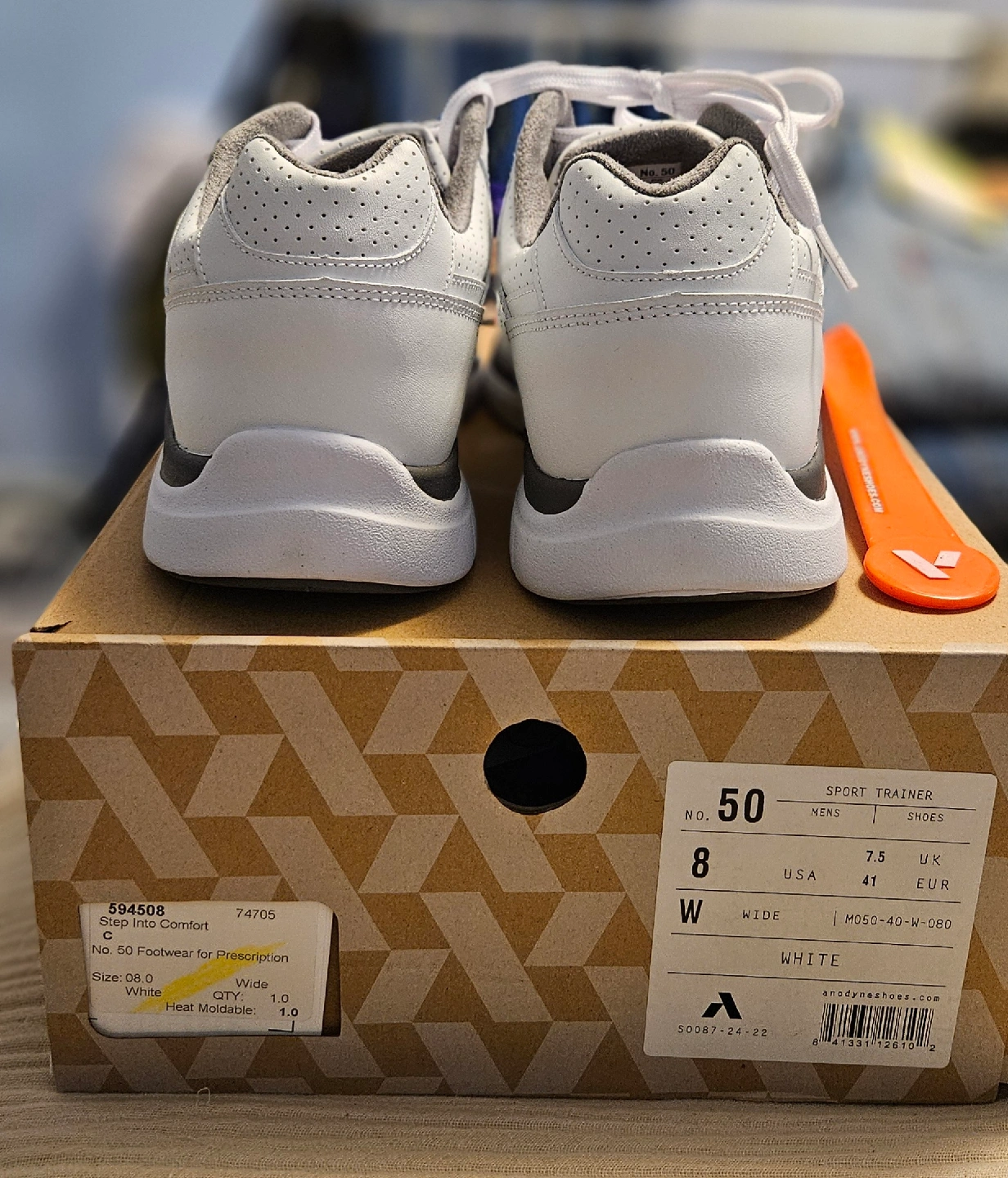 Selling a pair of Brand New Anodyne Sport Trainer shoes in white, size US 8 wide! These are the 'Step Into Comfort' model (No. 50) perfect for everyday wear. Comes with a shoe horn.