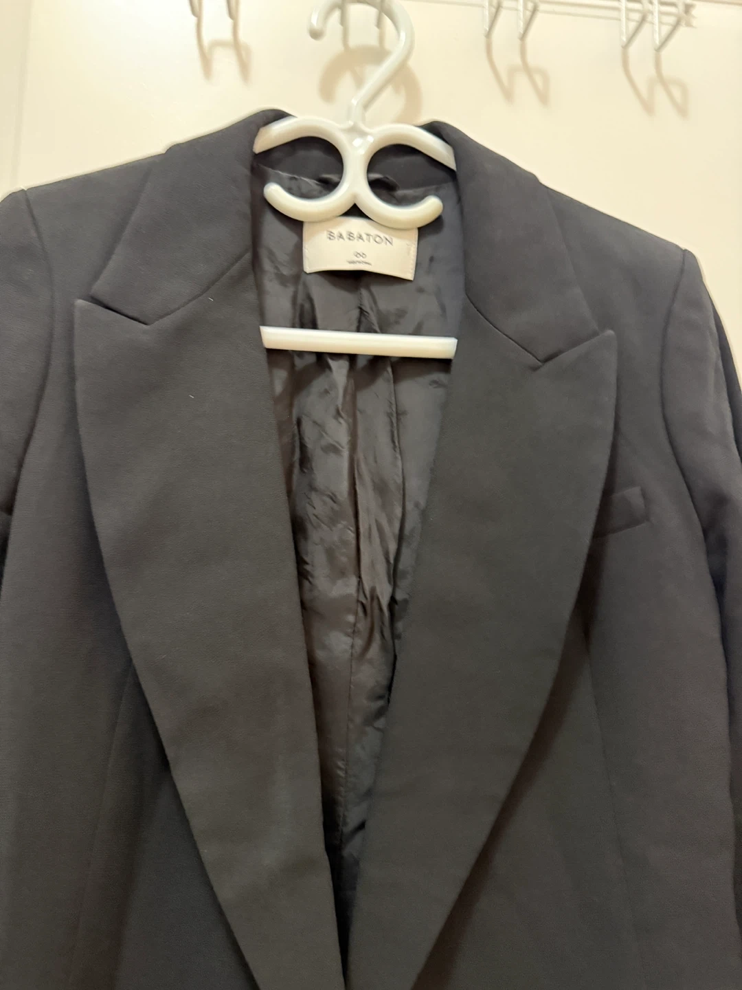 Selling a stylish black blazer from Aritzia's Babaton line! It's a size 00 and in great condition. Perfect for adding a touch of sophistication to any outfit