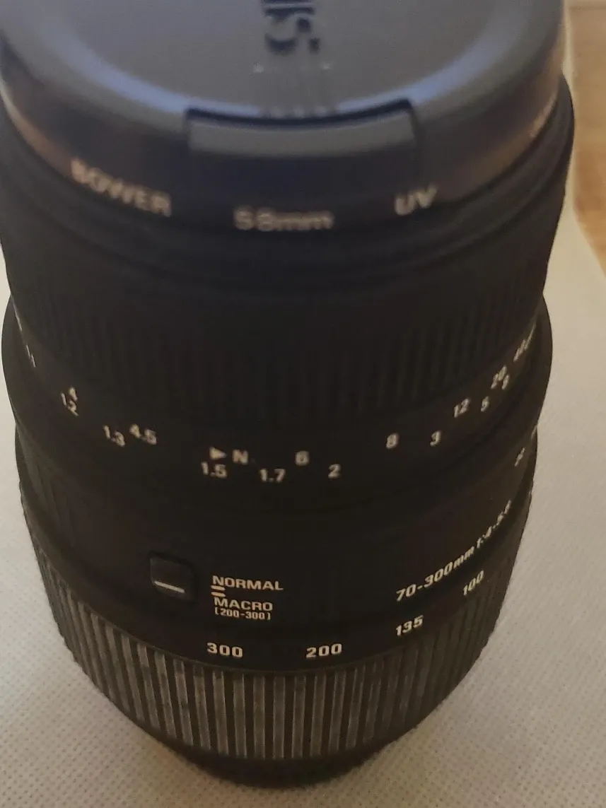 Selling a Sigma 70-300mm f/4-5.6 DG Macro lens! It's in great condition and ready for a new home. This lens is perfect for capturing detailed close-ups and distant subjects. The macro function allows for stunning close-up shots, making it versatile for various photography styles