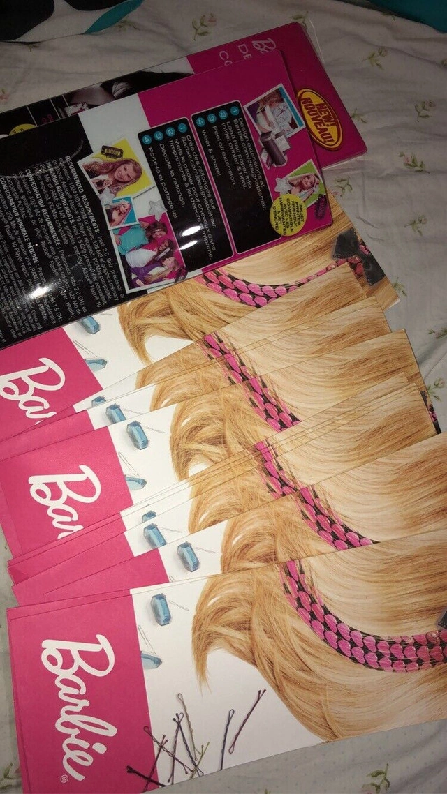 Barbie Designable hair extensions (20 packs) with Barbie doll. One of the packs has 8 Extensions, the other has 12. Design online, print, and wear. Pickup in Douglasdale