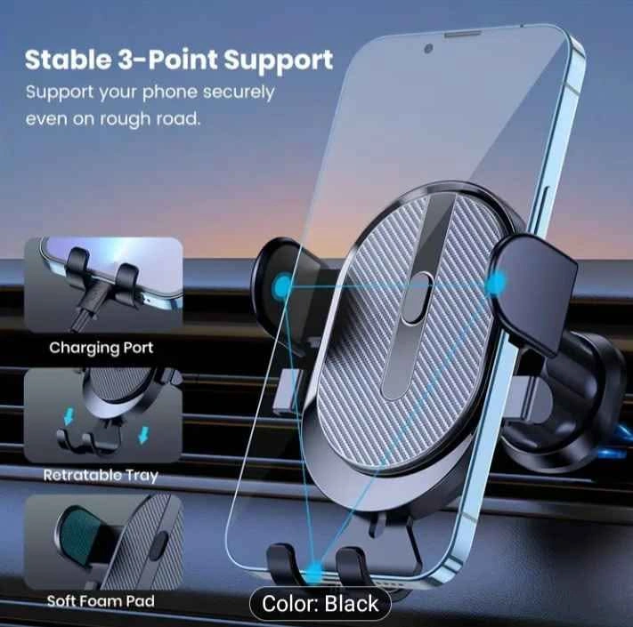 Universal Car Phone Holder β Sturdy Metal Base & Charging Access Drive with confidence while keeping your phone safe and charged! πππ± πΉ Durable Metal Support β Strong bottom grip with a metal base to keep your phone steady on bumpy roads. πΉ Charging-Friendly Design β Open bottom slot allows easy access for your charging cable without removing the phone. πΉ Adjustable Viewing Angle β Rotate and tilt for the perfect position during navigation or calls. πΉ One-Hand Operation β Simple mount and release for quick daily use. πΉ Universal Compatibility β Fits most smartphones up to 6.7β. β¨ Sleek, compact, and reliable β an essential accessory for every driver.