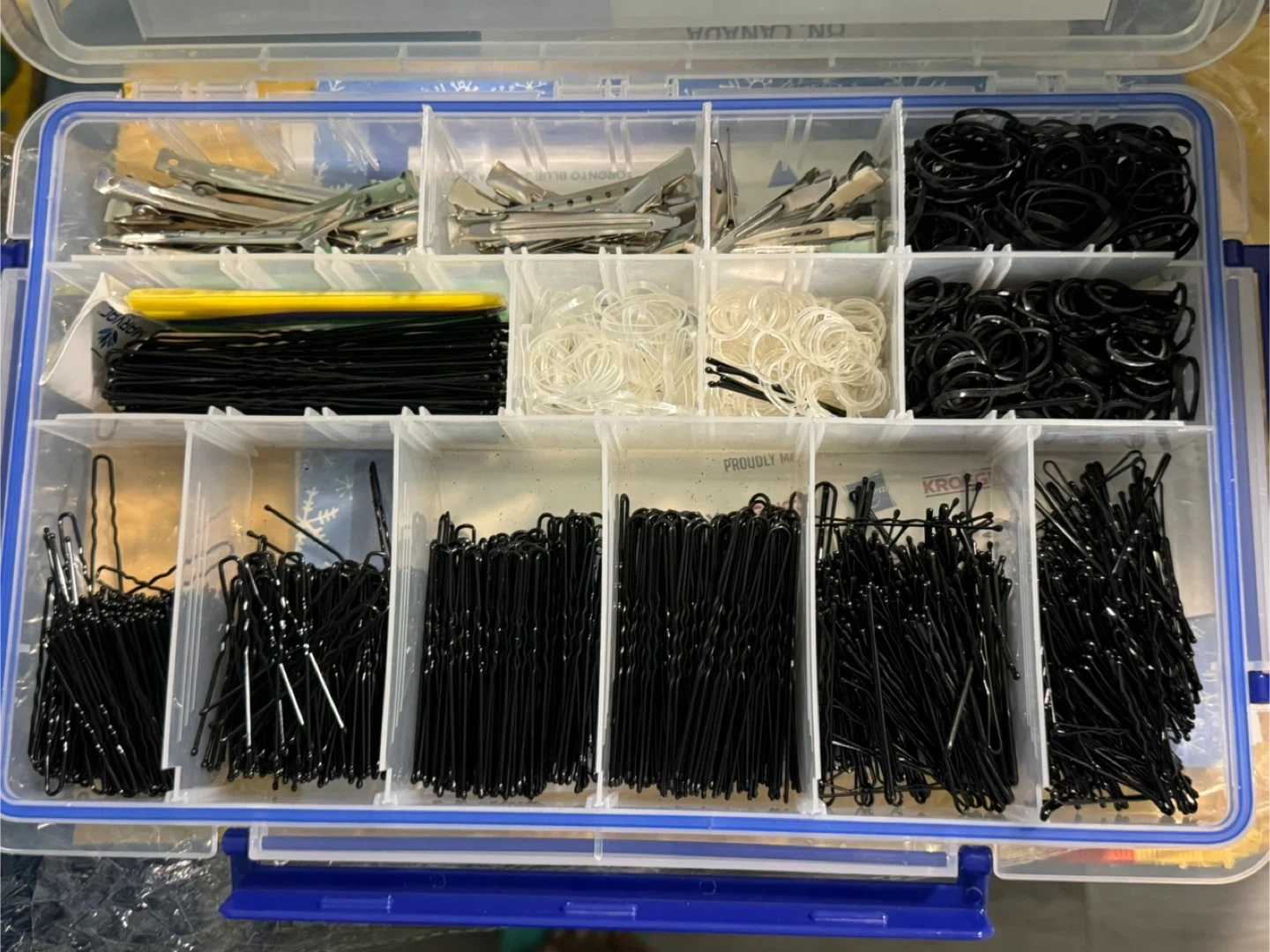 Hair styling accessories new Lots of Bobbi pins and U-pins of different sizes Rubber bands Hair clips Great for hairstylist or for practice $50 obo Pickup near Scarborough town centre Moving sale..!! Please check my other listings too Thank you…!!