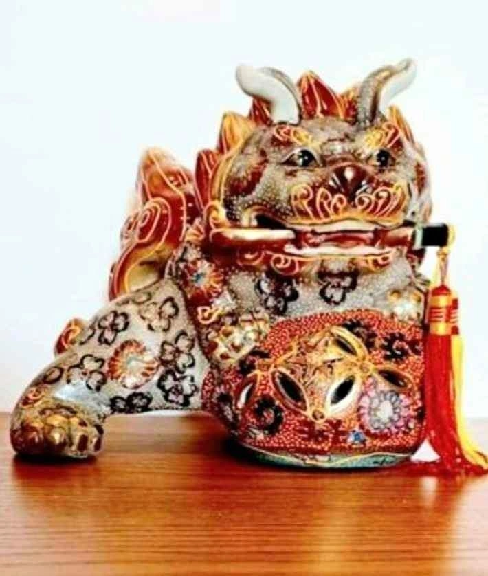 65Vintage , Very Rare , Stunning Satsuma , Chinese Art Hand Crafted , Foo Dog , Porcelain Sculpture Wards Off Negative Energy, Evil Spirits, & Bad Luck, Protecting the Home & its Inhabitants. Length : 20 cm Height : 18 cm Mint Condition , no chips or cracks Please check out my other rare handmade collectibles!