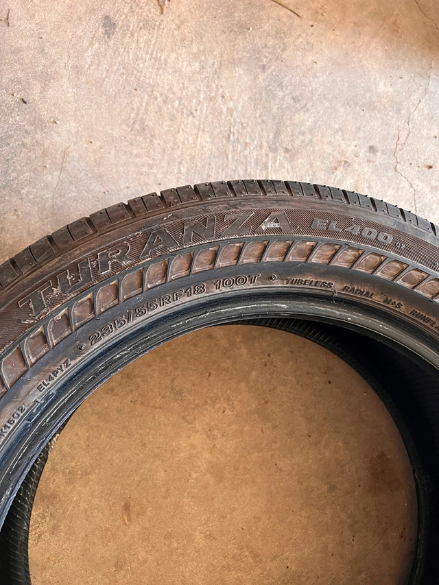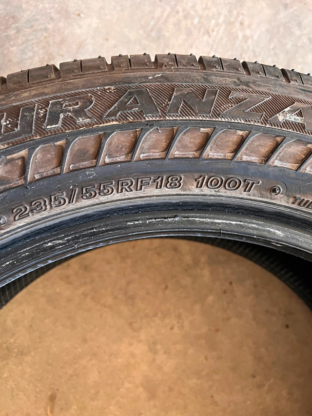 73For sale in good condition 1 runflat tire Bridgestone Turanza EL400 - 235/55/18 100T. No crack, no damage. Came off 2021 Toyota Sienna. Tire had 1 patched, no leak. Tread on tire 9/32” (87%).