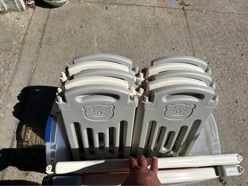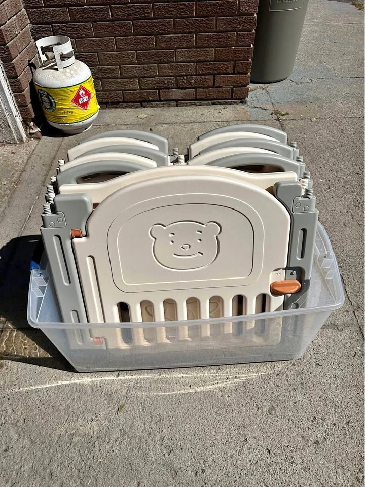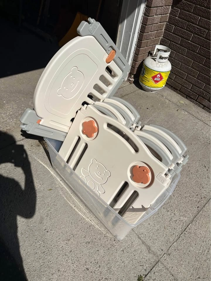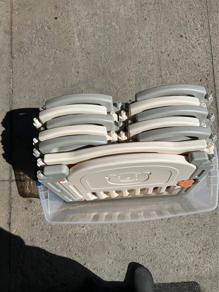 Easy to Install: As a folding baby playpen, it does not need installing after disassembly. Just tighten the screws and then it can be used. It takes you even less than five minutes. Steady: Specially designed rubber feet underneath of the yard so the parts don't go sliding around. Free Parents' Hands: Keep baby safe in there play centre when mom/dad needs to cook, clean up, go to the bathroom, etc. Specifications: 1. Pattern: Little Bear 2. Material: HDPE 3. Small Piece Dimensions: (22.83 x 12.3 x 1.39)” / (58 x 31.25 x 3.54)cm (L x W x H) 4. Game Playpen Dimensions: (22.79 x 26.69 x 1.38)” / (57.88 x 67.8 x 3.5)cm (L x W x H) 5. Door Sill Dimensions: (23.07 x 26.69 x 1.38)” / (58.6 x 67.8 x 3.5)cm (L x W x H) 6. Weight: 31.52lb / 14.3kg 7. Color: white&gray Package Includes: 10 x Small fence 1 x Door fence 1 x Game fence 16 x Rubber & Suction Cups