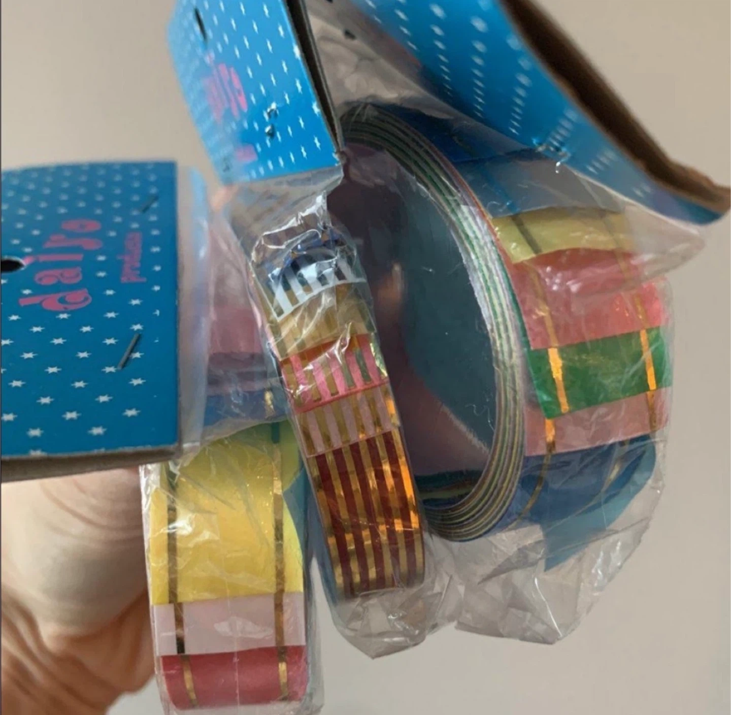 All are multicolored packages, and are what you use to fold origami stars. 🌟