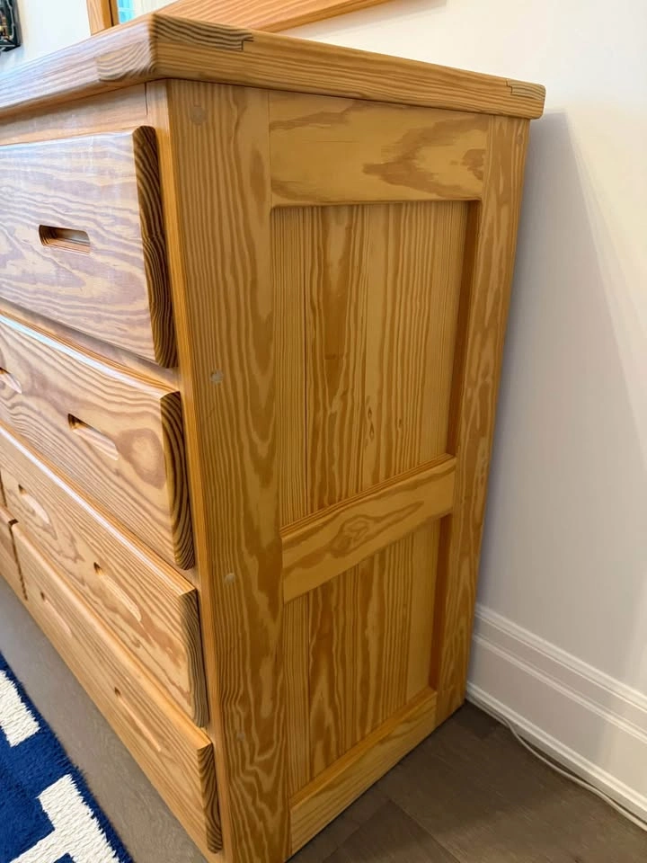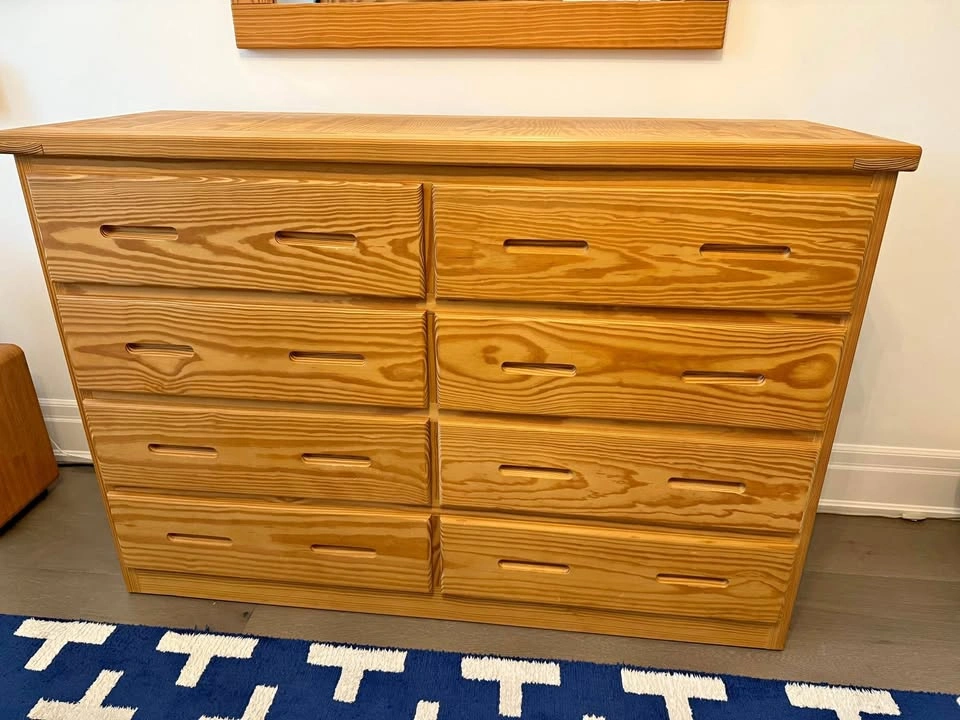 Crate design 8 drawer dresser is excellent condition. Sells need for $1400. Overall: 55" wide x 20" deep x 30" high. SKU: 7012 Drawer openings: 22" wide x 16 1/2" deep x 6" high Pick up in Burlington