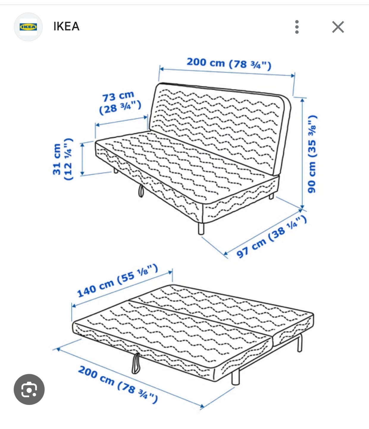 IKEA futon cum sofa bed/ sofa cum bed Measurements are in the picture Includes mattress and cover also Pillows not included It converts to a queen size bed Easily functioning Very sturdy $70 obo Pickup near Scarborough town centre Will be available this month end Moving sale..!! Please check my other listings too Thank you..!!