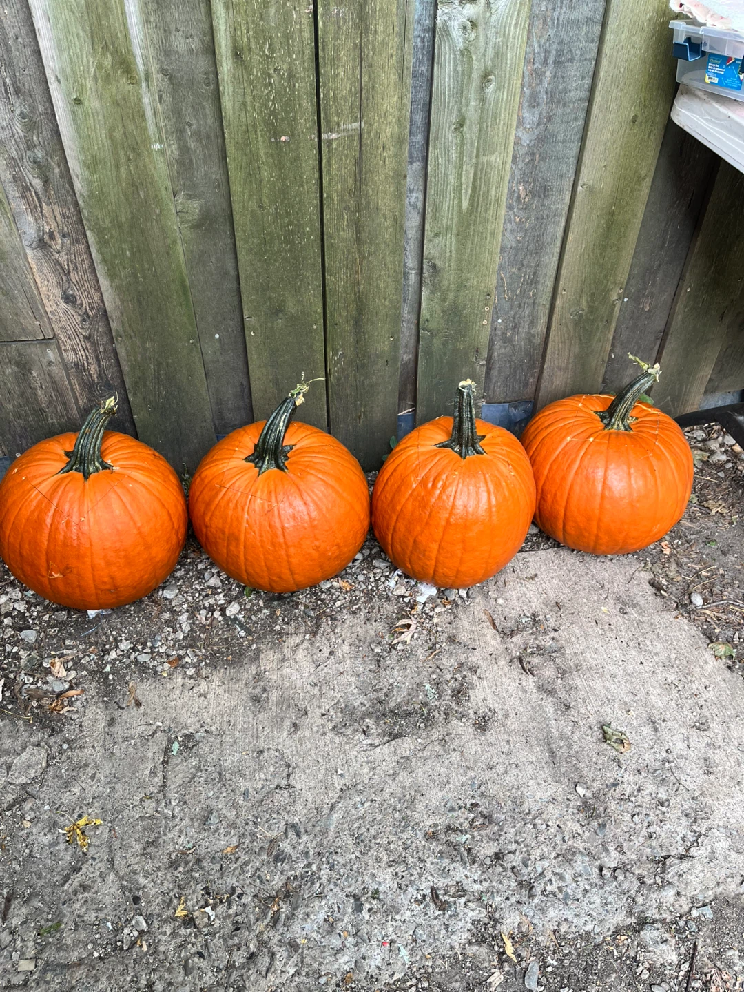I have 5 large pumpkins that we removed the seeds for anyone that wants them. There are 4 pictured but I do have 5.
