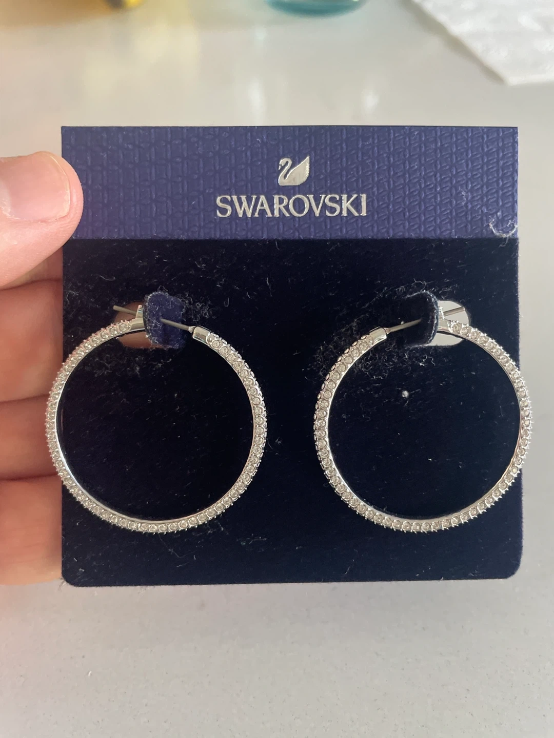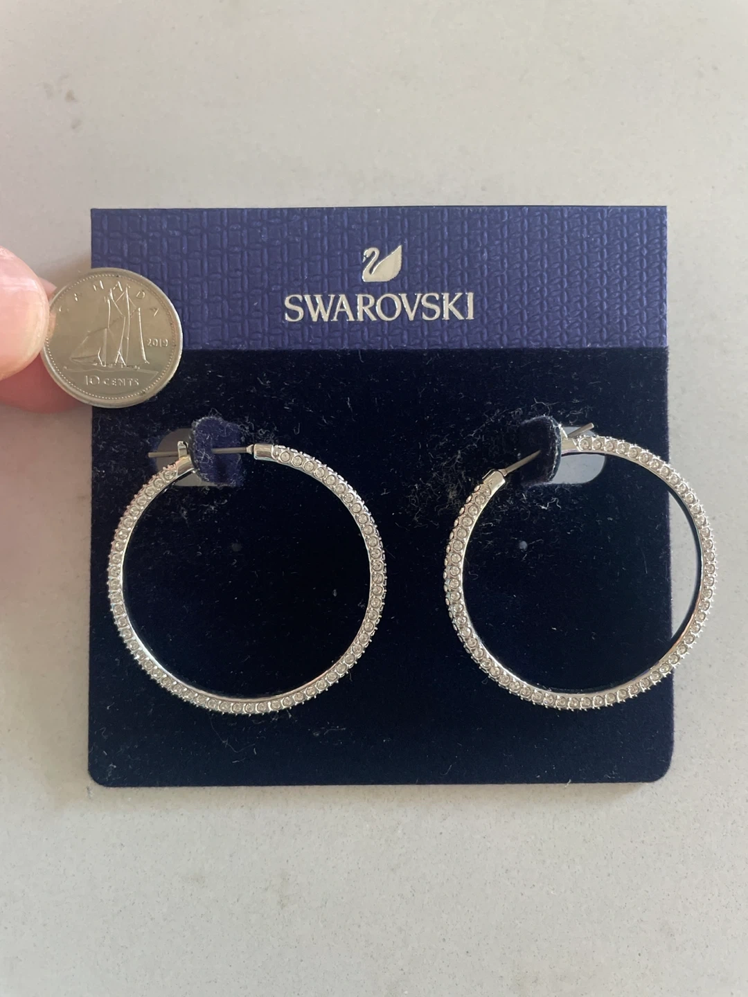 Selling a pair of Swarovski crystal hoop earrings. They are in excellent condition and come with the original packaging. The original price was CAD 139.00. You can now live your dream by walking around all day saying you’re “hooping like LeBron” and the basketball fans in your life will be forced to giggle.