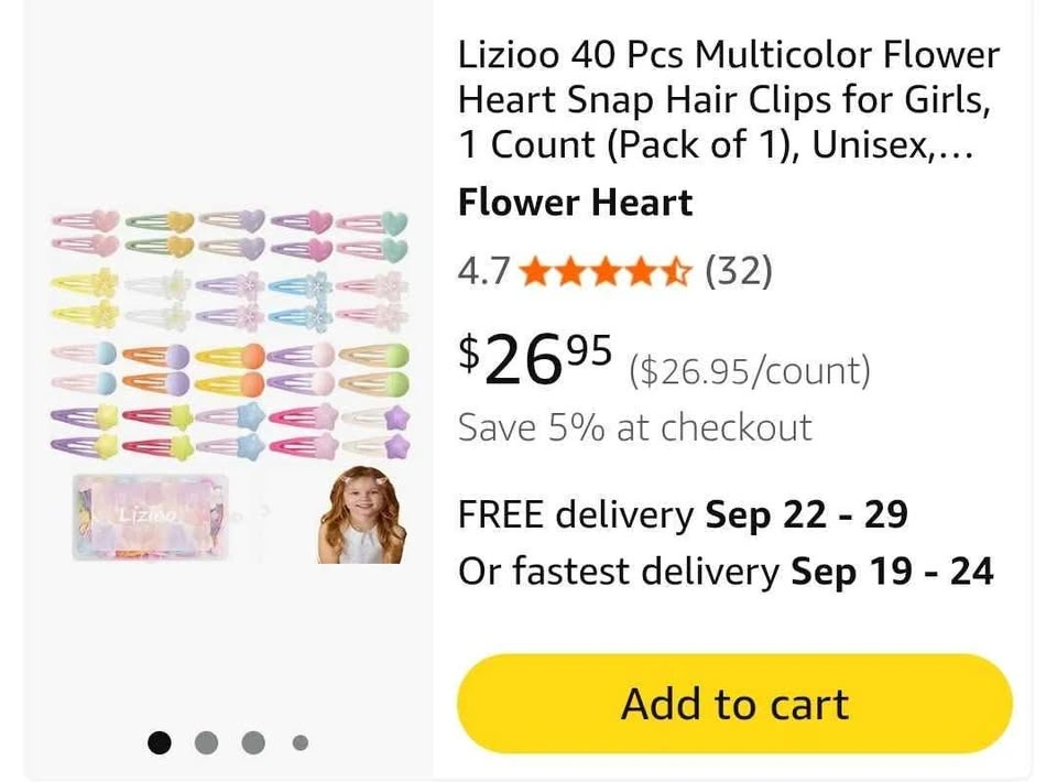 40 pcs Hair Clips No Slip 1.96 inch Cute Hair Accessory Heart Flower S06-7.50