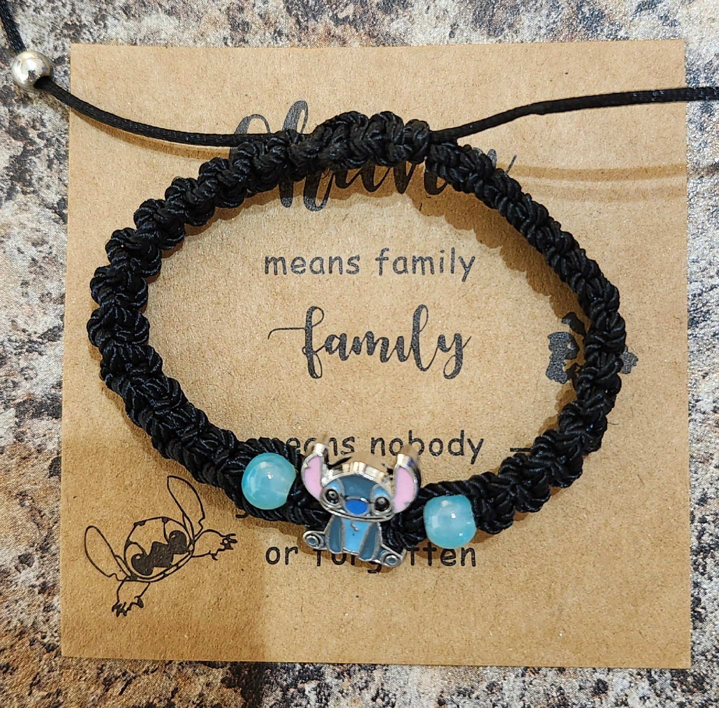 Buy & SellOhana Stitch BraceletOhana Stitch Bracelet$5Cute black Ohana bracelet with a Stitch charm and blue beads! The card says "Ohana means family, family means nobody gets left behind or forgotten"ConditionNewWHERE TO MEEThollick kenyonView MapSELLERverifiedTLHollick Kenyon52243 reviews0 chats·1 favorites·6 views