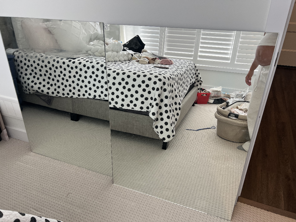 Selling a large wall mirror. It's in great condition and ready to brighten up your space! Perfect for a bedroom or living area