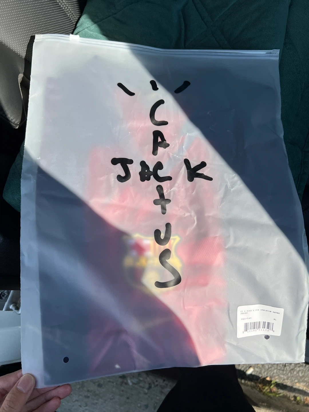 Selling a Travis Scott x Nike x FC Barcelona Retro 2000/01 Home Skeleton Jersey in size XL! The jersey is multicoloured and comes in its original packaging.