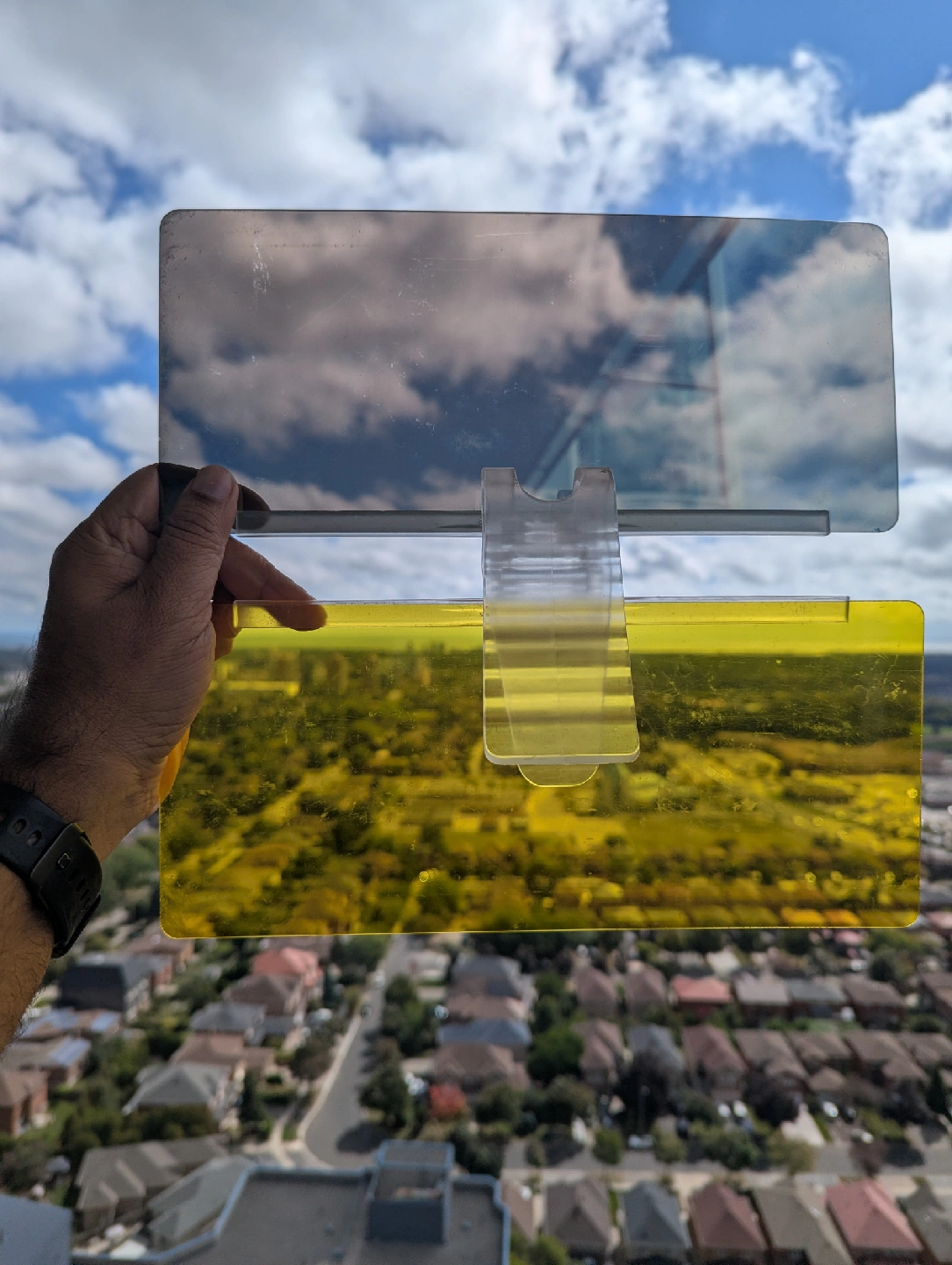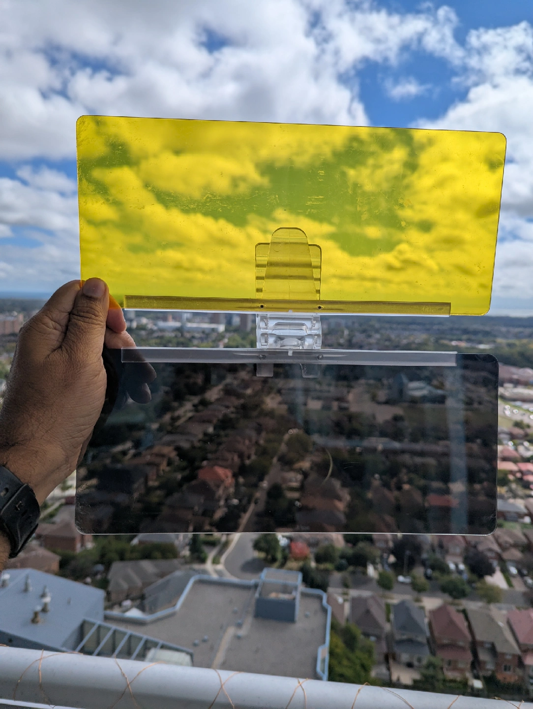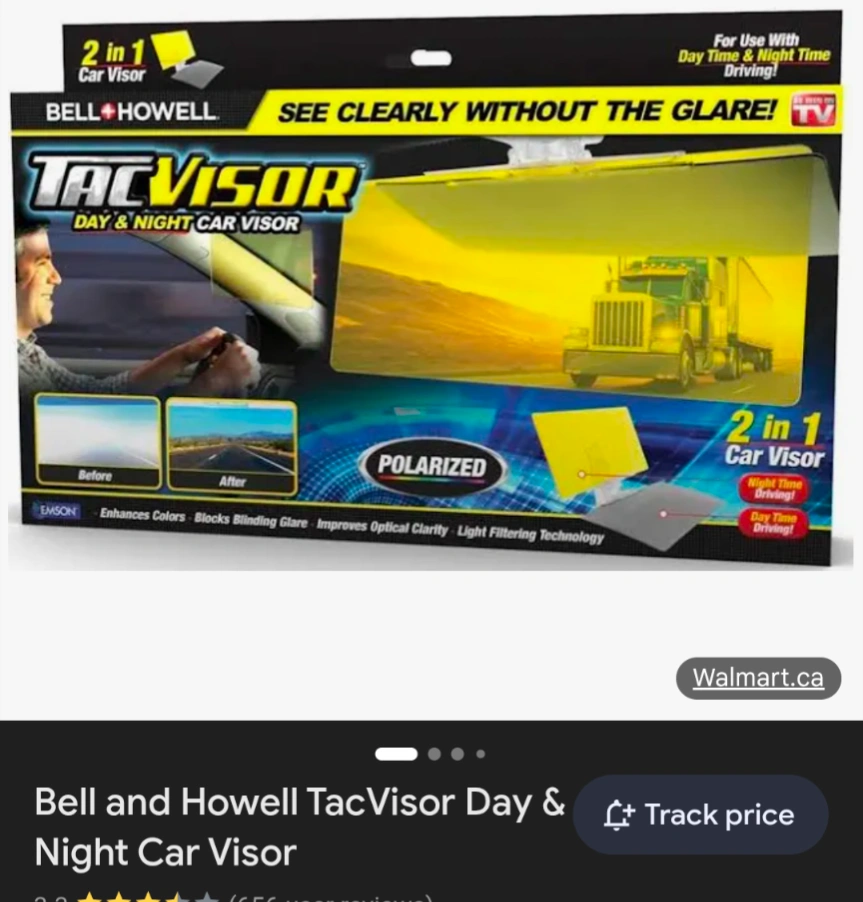 Selling a Bell and Howell TacVisor for your car! It's a 2-in-1 visor for both day and night use. It helps to enhance colors and blocks blinding glare for safer driving. It also improves optical clarity with its light filtering technology!
