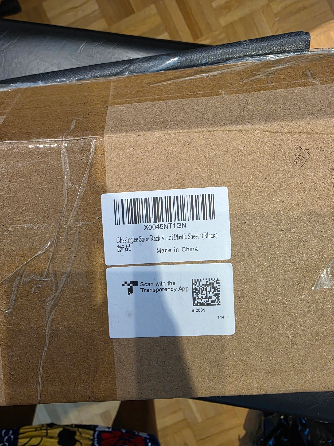 Selling a Chasinglee 4-tier shoe rack in black. It's made of plastic sheets. Great for organizing your shoes!