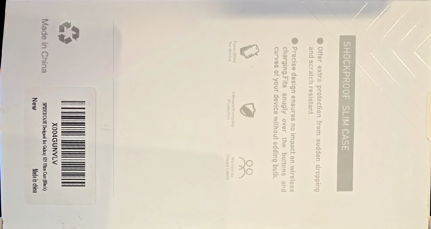 Selling a brand new Galaxy S25 Ultra case in black! It's a shockproof slim case that offers extra protection from sudden drops and scratches. The precise design ensures no impact on wireless charging and fits snugly over the buttons and curves of your device without adding bulk. Form-fitted for device and ultimate everyday protection! Comes in the original packaging.