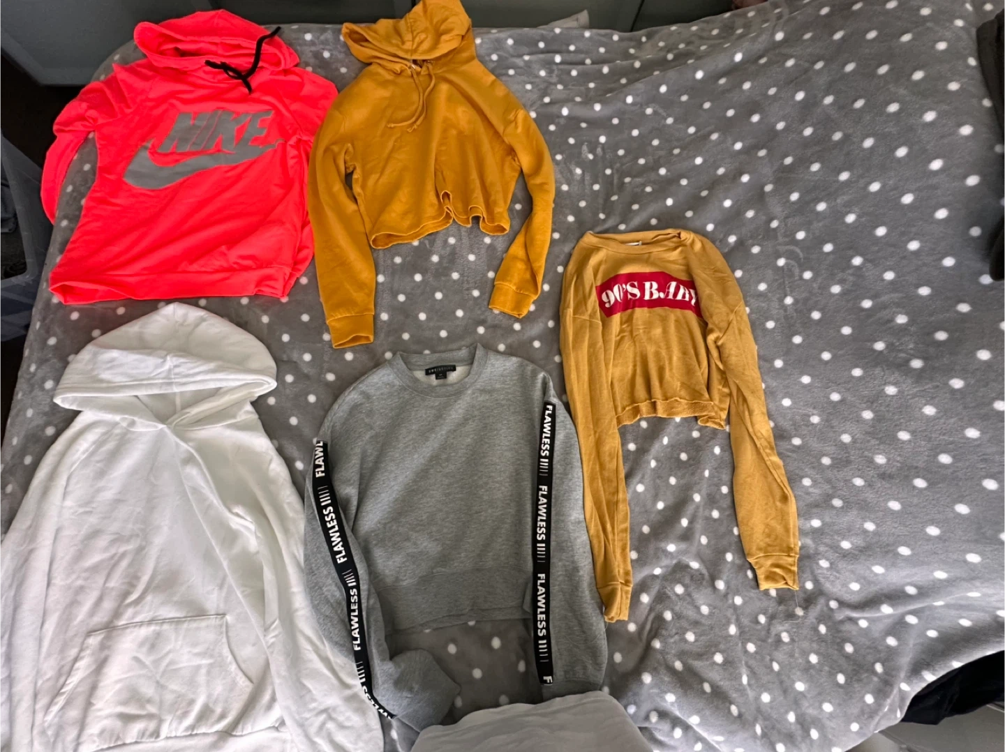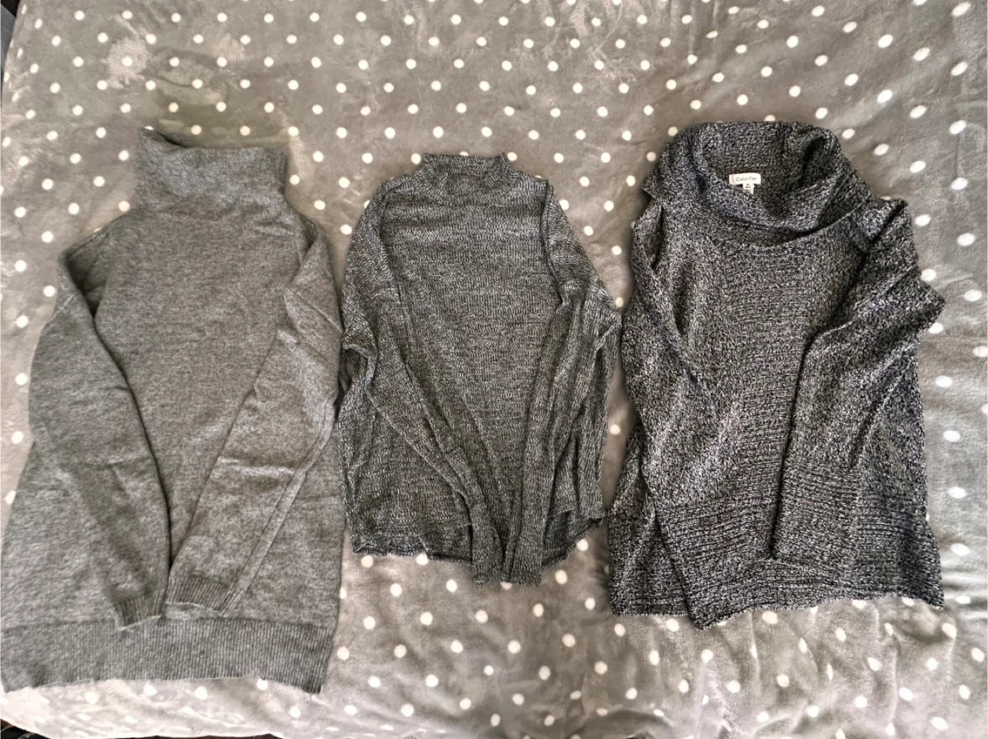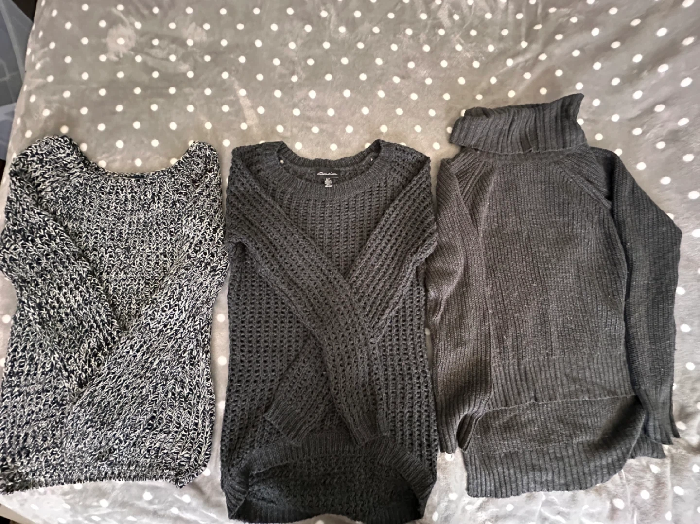 Selling a bundle of assorted sweaters and a jacket. There are various colours and styles, perfect for layering or adding to your wardrobe! All in great condition and ready for a new home