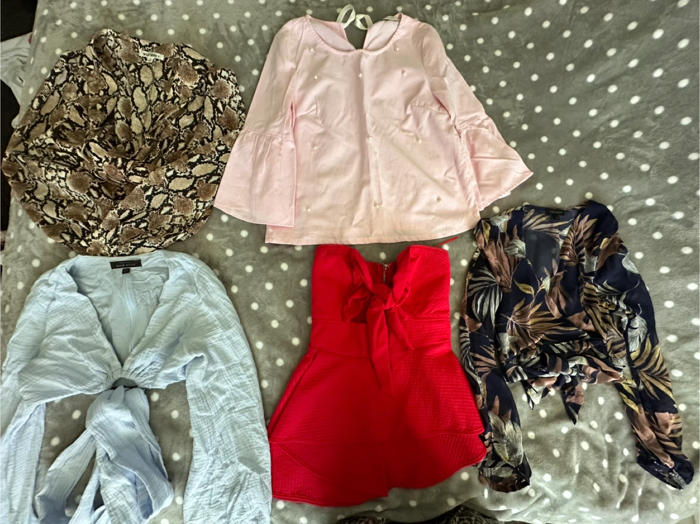 Selling a bundle of women's clothing in various styles and sizes. There's a mix of tops and dresses from different brands. Perfect for refreshing your wardrobe!