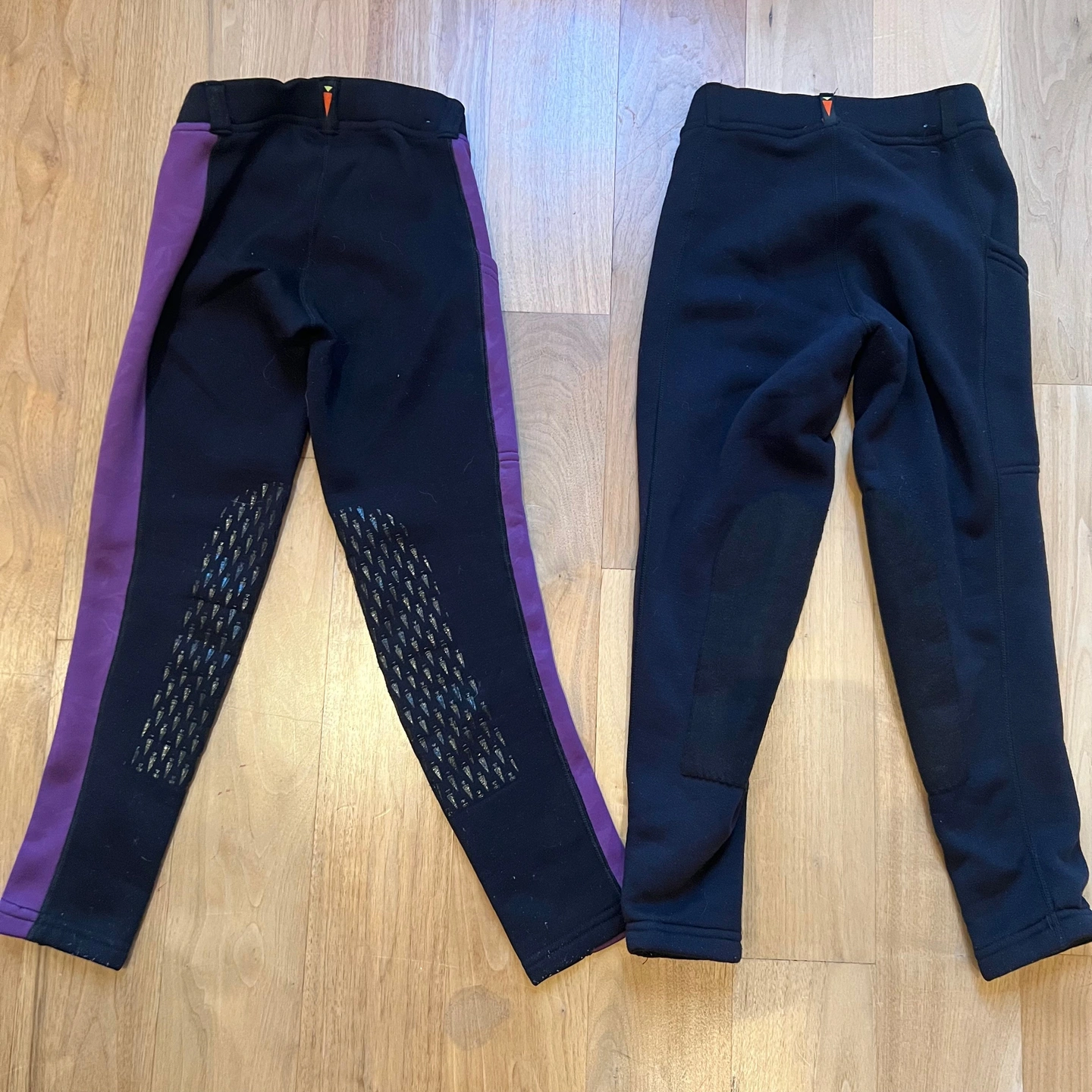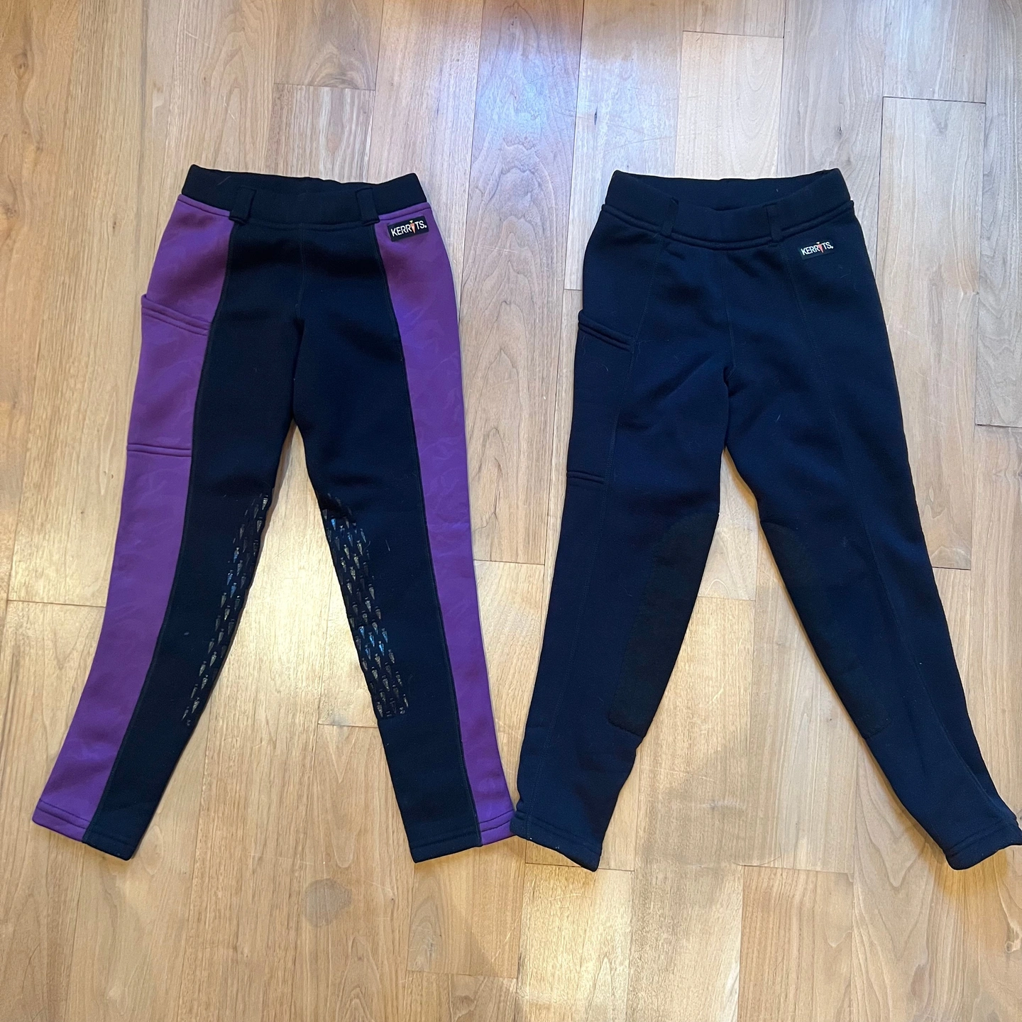 Two pairs of Kerrits Powerstretch Fleece Pocket Tights, in Kids size Small. This durable tights will keep you warm and cozy all winter long.