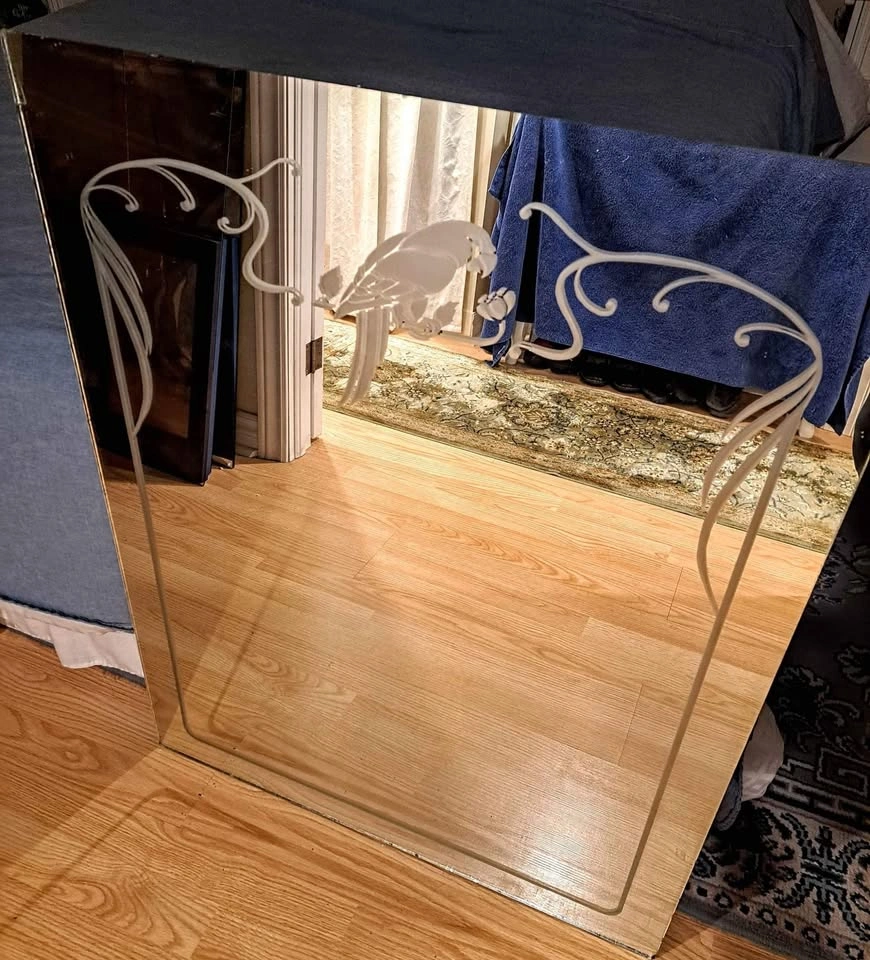 Large Mirror with Parrot Etching