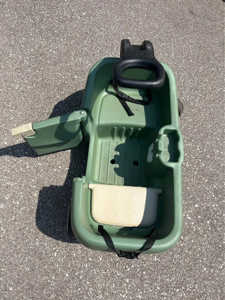 Great for park trips, neighbourhood walks & hauling toys ποΈ Perfect for trick-or-treating at Halloween π 2 seats with seatbelts for safety with easy open door for those independent little ones to climb aboard! π Hidden storage compartment under one seat and floor drainage holes 2 built-in cup holders π₯€ Easy-pull handle for adults and kids & smooth-rolling wheels π Good condition, easy to clean Stored in garage Pickup within South Etobicoke. Nearest intersection - Browns Line & Horner Ave π