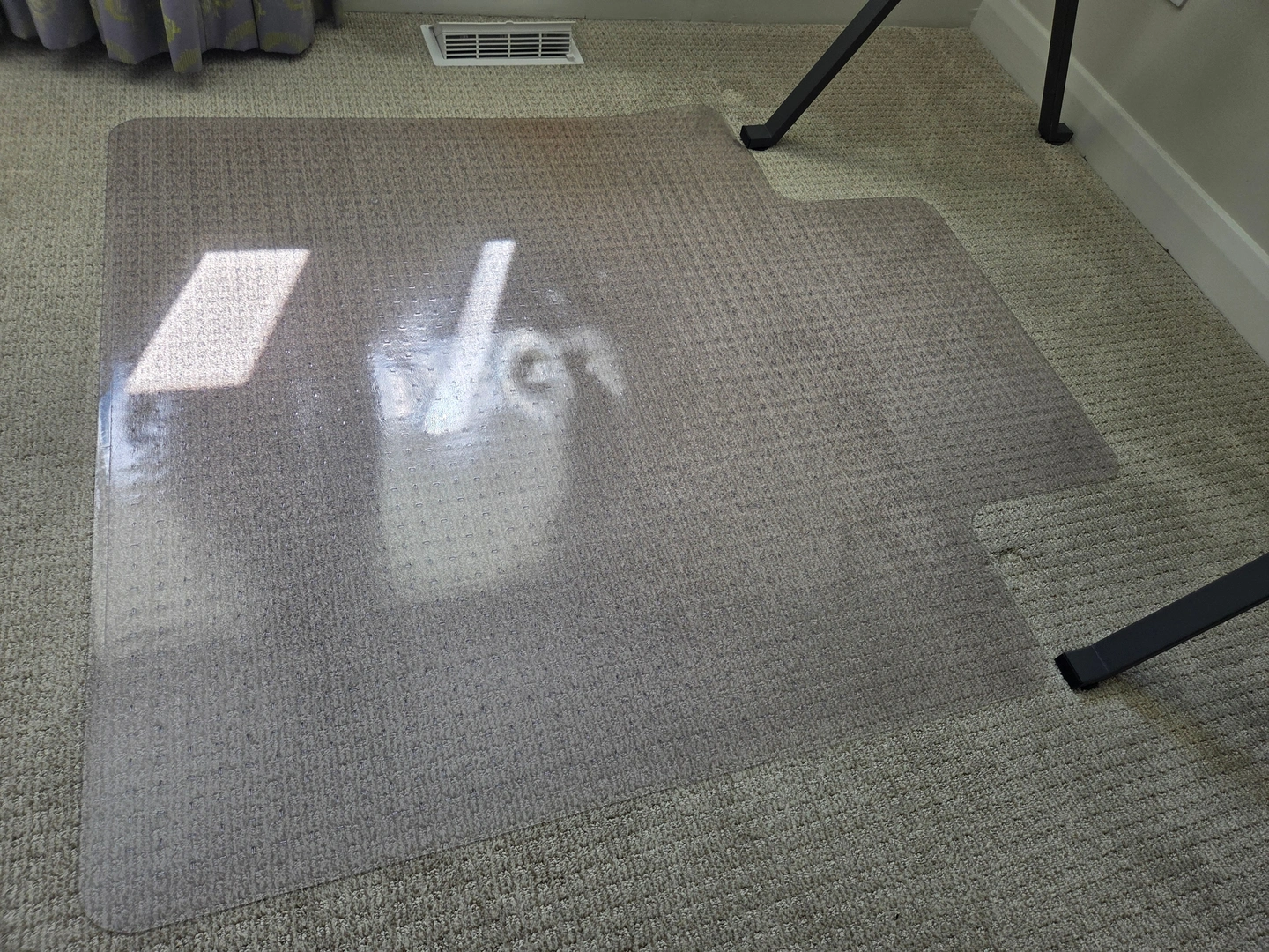 Offering a plastic chair mat to protect carpets from rolling office chairs. 45.5" x 52.5". Great condition. No cracks. Perfect for home office or student.