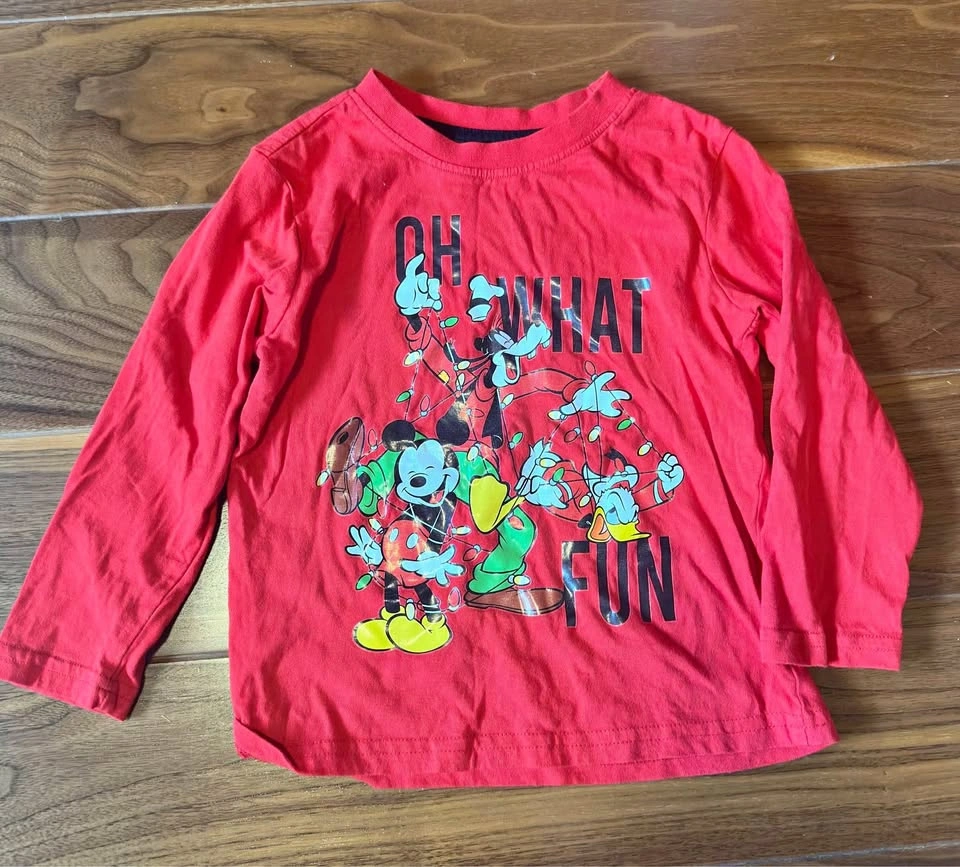 60Mickey Mouse Christmas Shirt “Oh What Fun” Like NEW! 4T Flexible Porch PU South Arm