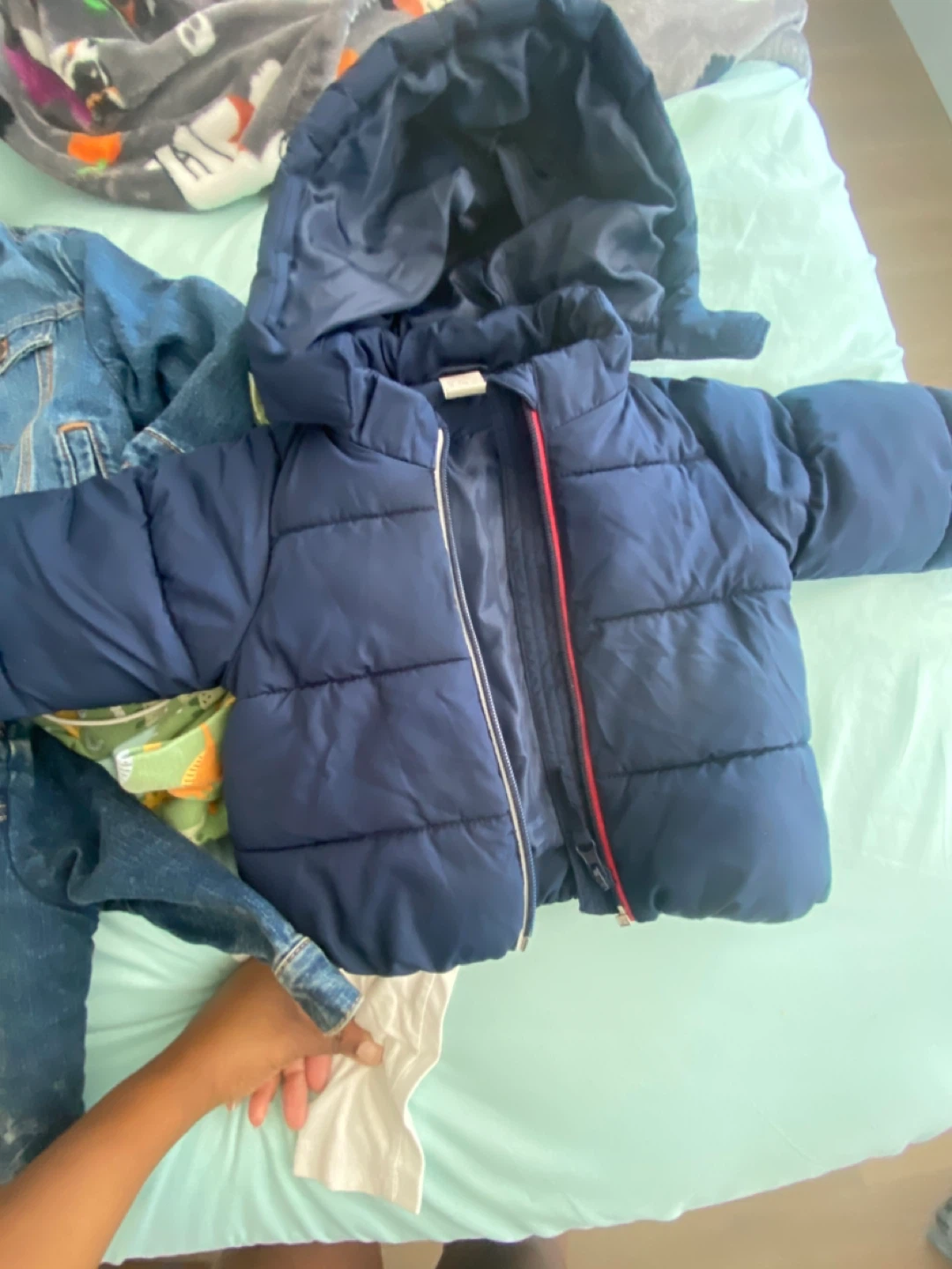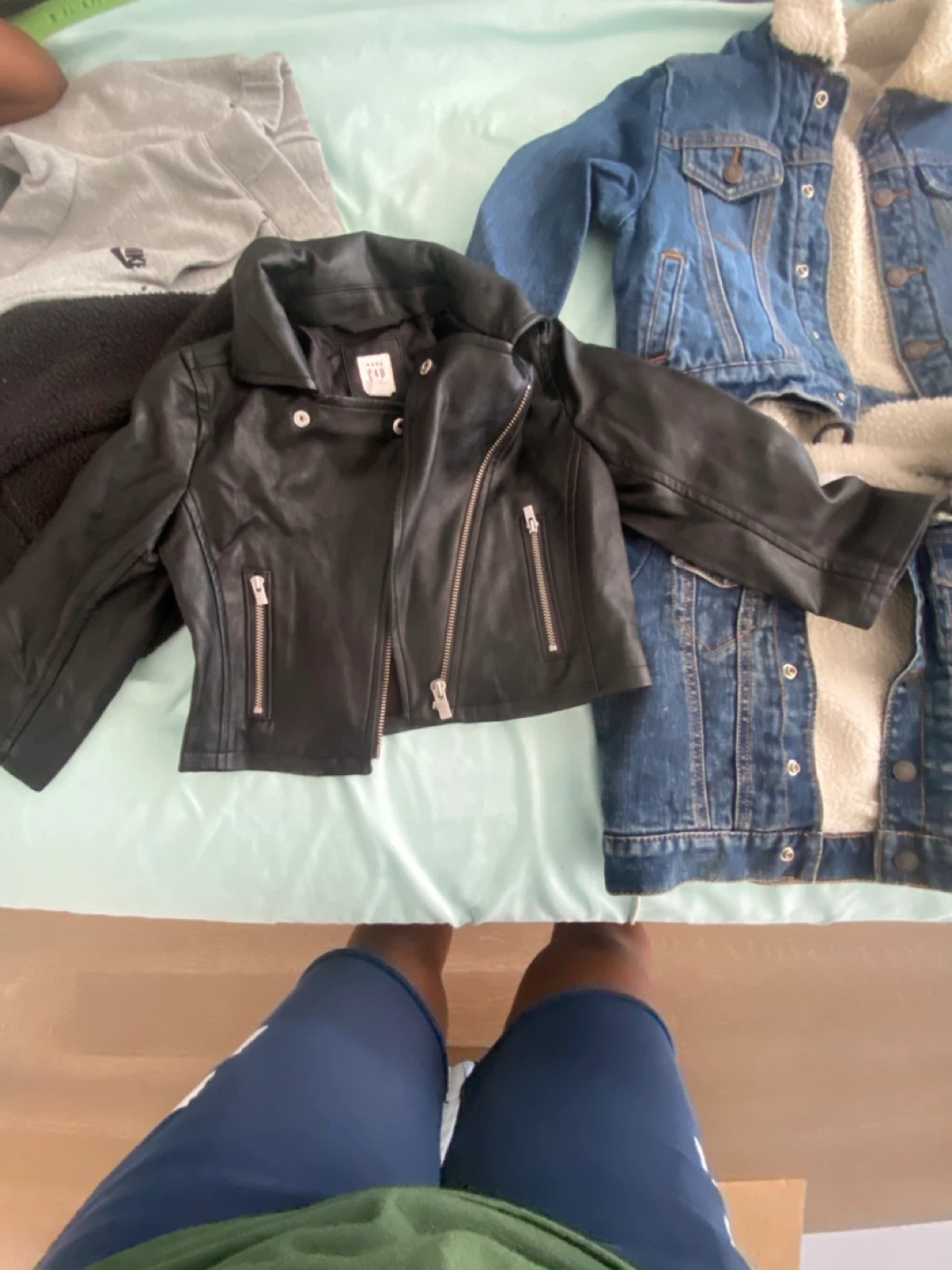 The jacket is in great condition and ready for a new home... Faux leather from the Gap size 2($20) and H&M puffer size 4-6 month ($15)...All in great condition