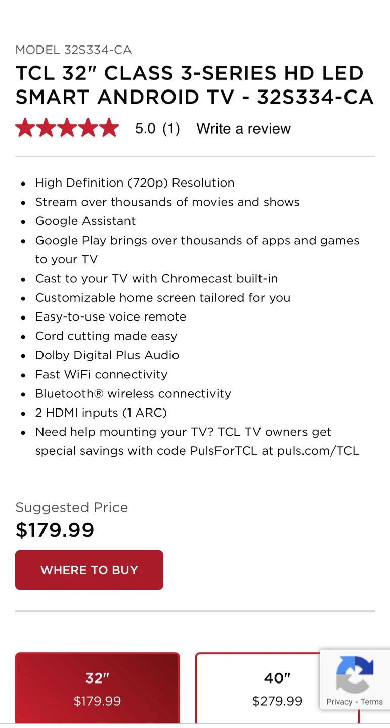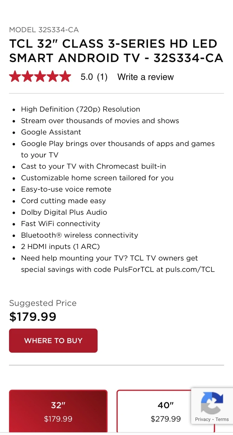 TCL 32" Smart Android TV