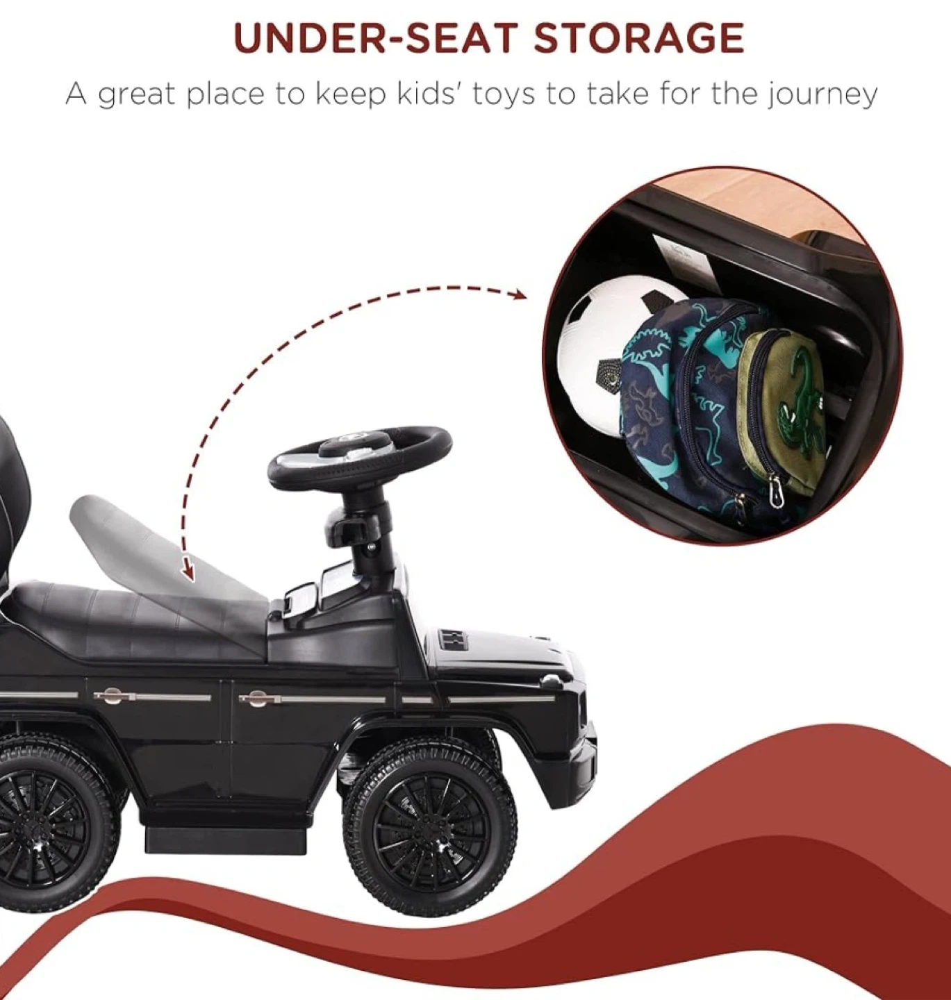 Under-Seat Storage: A great place to keep their toys to take for the journey. Dimensions: 9.1" L x 6.5" W x 3.9" H (23 x 16.5 x 10 cm), Seat height: 9.8" (25 cm).