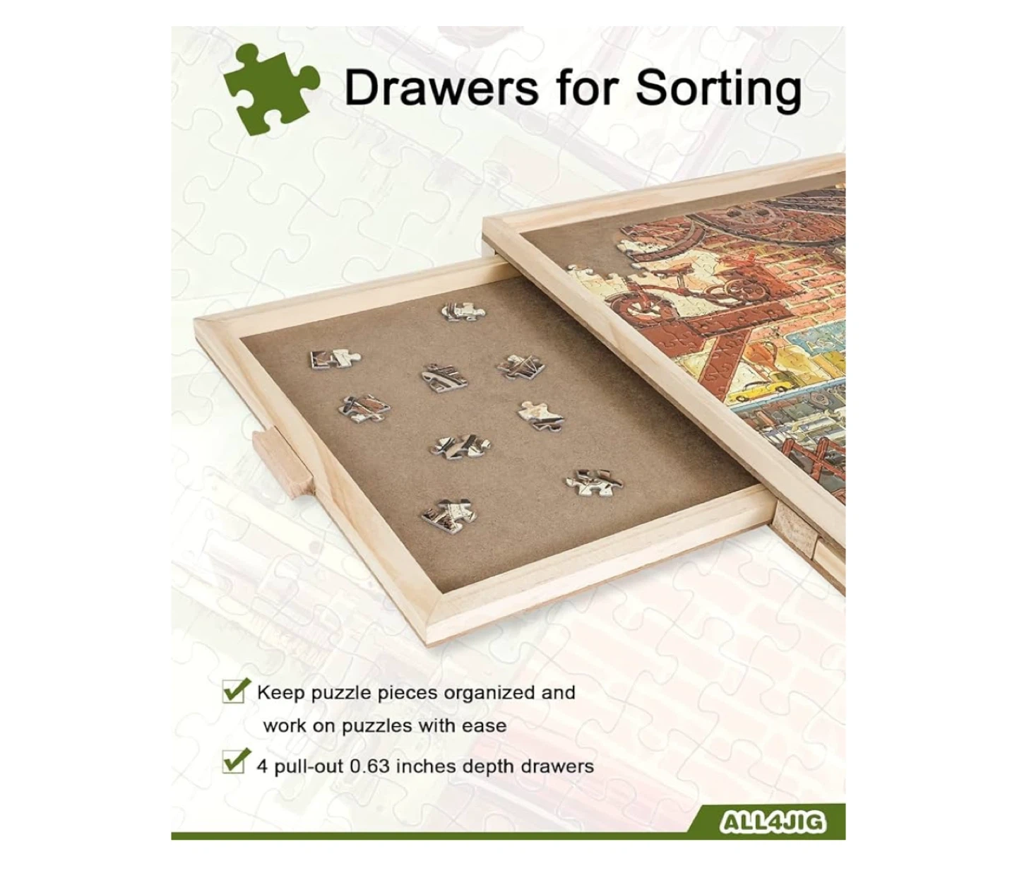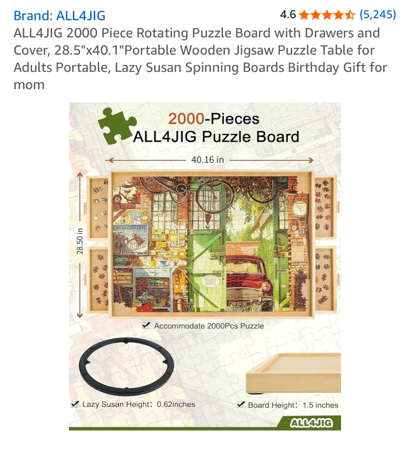 Selling an ALL4JIG 2000 piece rotating puzzle board with drawers and cover! It's 28.5" x 40.1" and is a portable wooden jigsaw puzzle table for adults. It also features a Lazy Susan spinning board, making it a perfect birthday gift for mom or any puzzle lover. 4 drawers for sorting puzzle pieces and keeping them organized. I received it as a gift but is too large for my home. Retail price: $126
