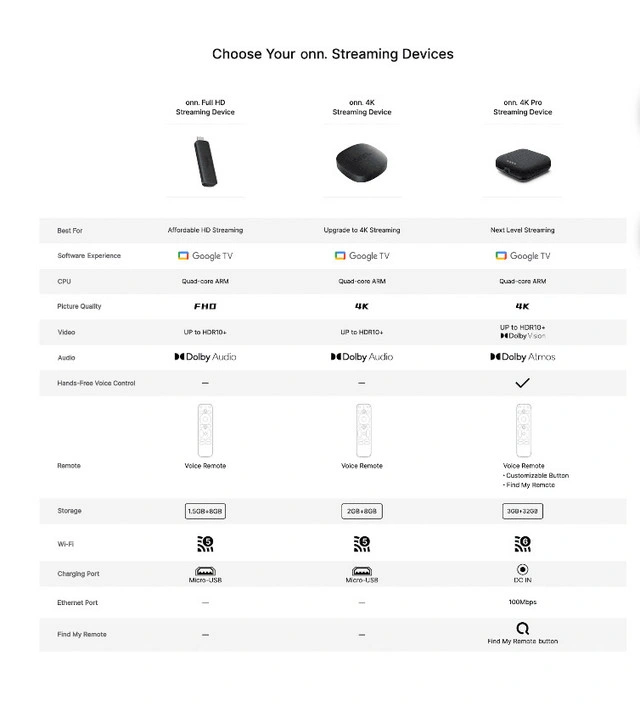 Get ready to transform your TV experience with this brand new Onn. 4K Google TV streaming device! Enjoy stunning visuals and seamless streaming of your favourite shows and movies. Here are some key features: * 4K Ultra HD resolution * Google TV interface * Voice remote with Google Assistant * Access to all your favourite streaming apps 4K UHD resolution TV streaming 2 GB RAM with 8 GB Storage WiFi: 2.4/5GHz 802.11 a/b/g/n/ac MIMO Compatible with Google Assistant CPU: Quad-core Cortex-A35, GPU: Mali-G31 MP2 Dolby Audio Fast WiFi Input: AC 100-240V, 50/60Hz, 250mA max; Output: DC 5V/1A Google TV OS - easily setup with your Google account P.S. If the ad is still up, the device is still available!
