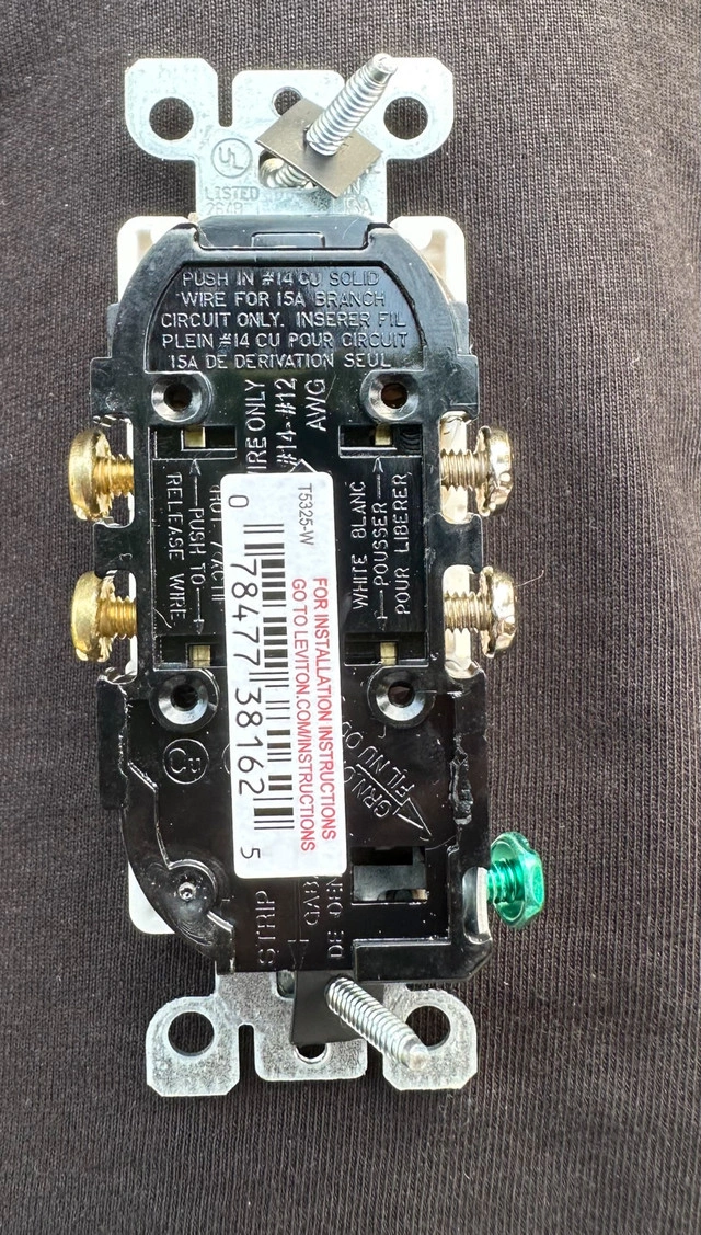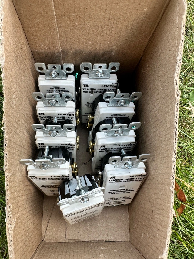 I am selling a set of brand new Leviton electrical outlets, perfect for any home project. These 15A tamper-resistant receptacles ensure safety and reliability, ready for installation. Specifications: * Type: Electrical Outlet * Brand: Leviton * Amperage: 15A * Feature: Tamper Resistant 10 available $4 each