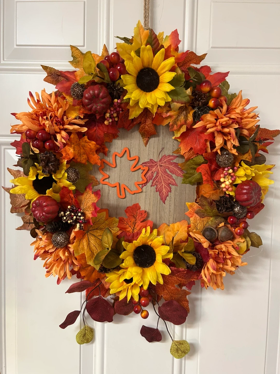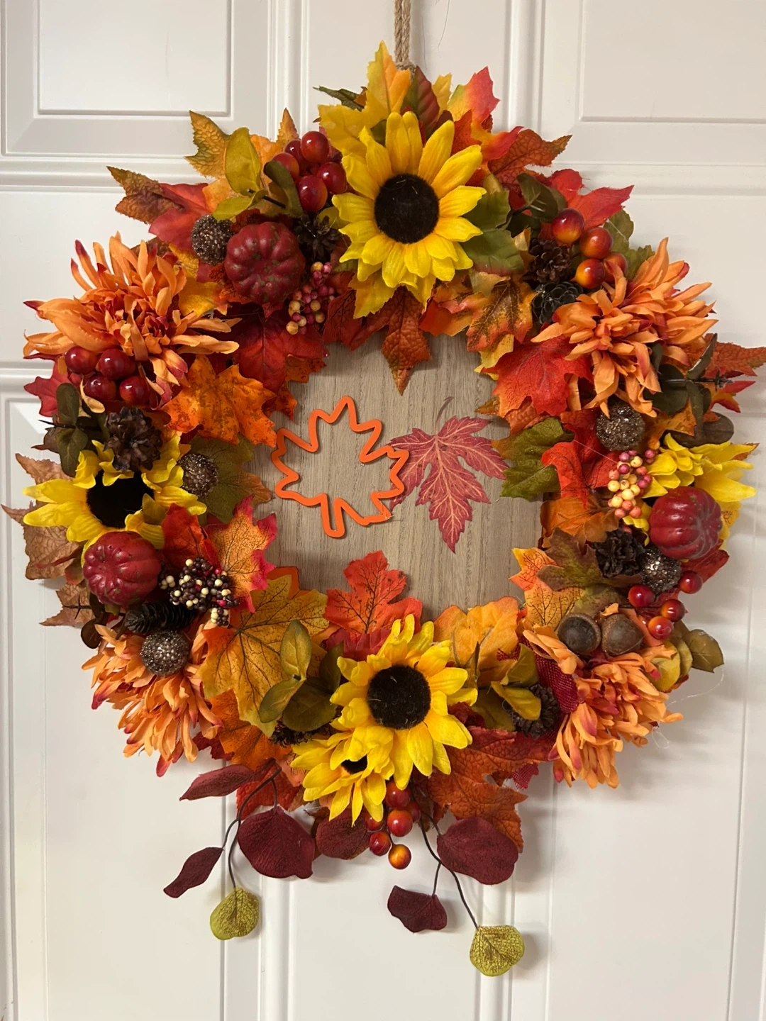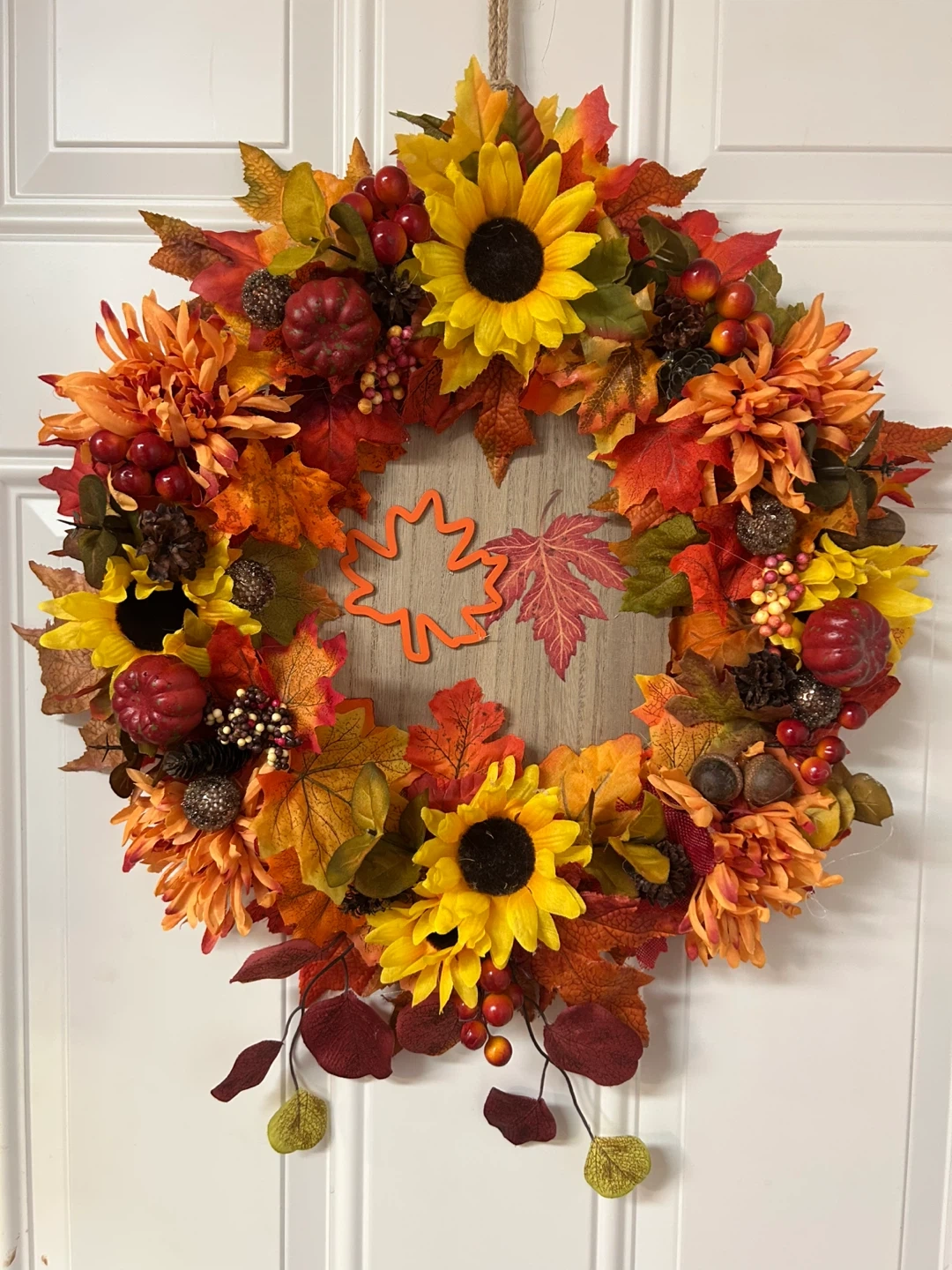 Fall Wreath handmade brand new with pumpkins and sunflowers