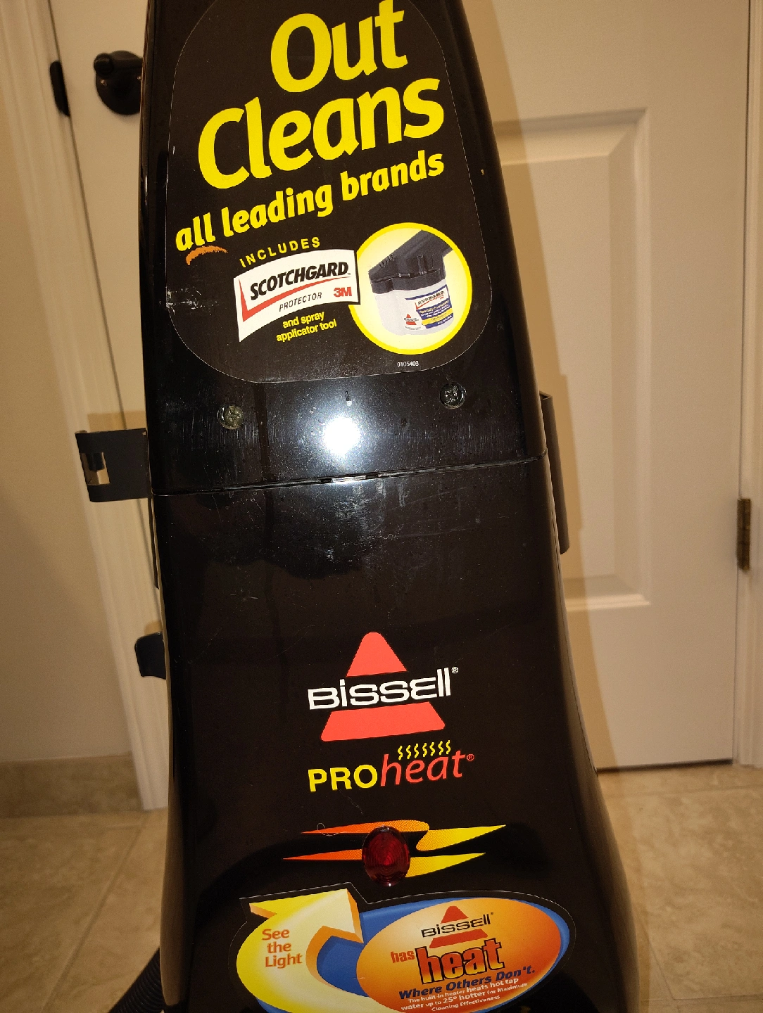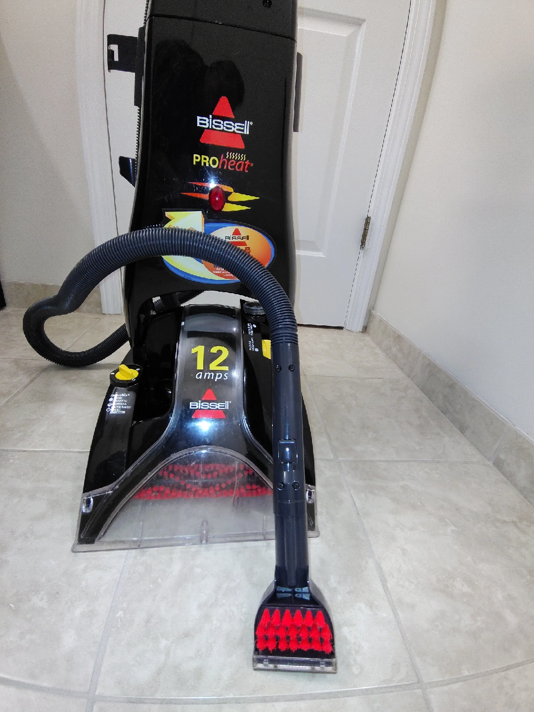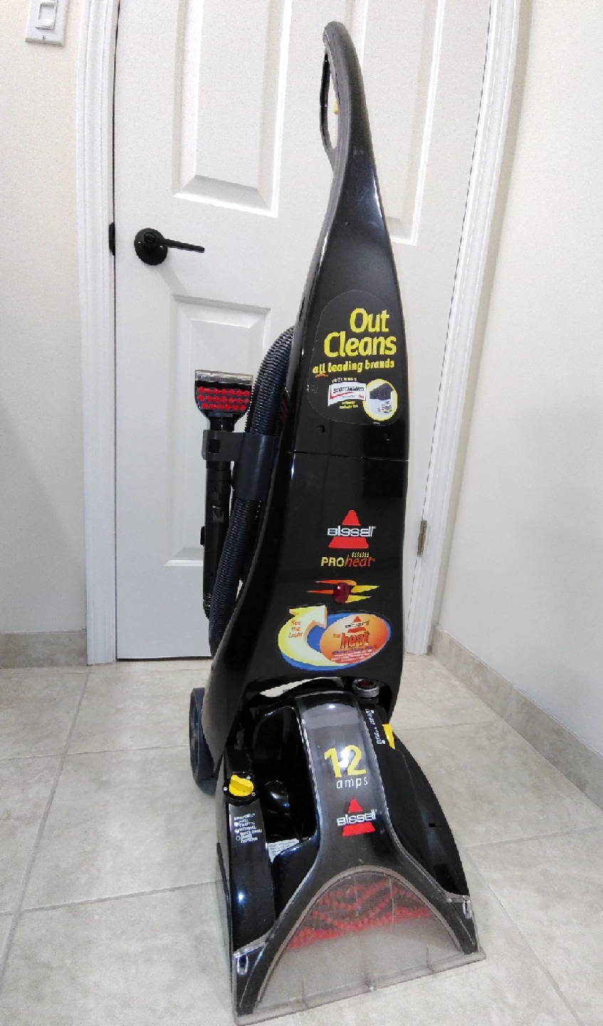 Selling a Bissell ProHeat carpet cleaner! This model uses 12 amps and is great for cleaning carpets and removing stains. It also includes a hose attachment for spot cleaning. It's in good working condition! Come with cleaning solution to tackle any task and 3 M Scotchgard for extra protection!!!