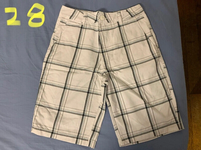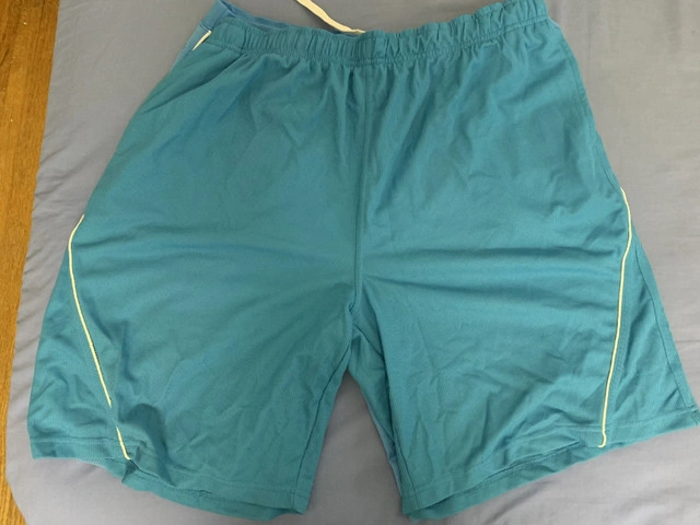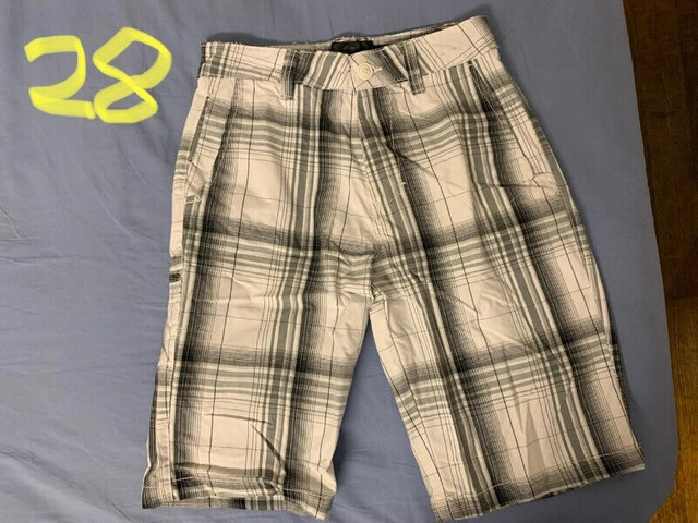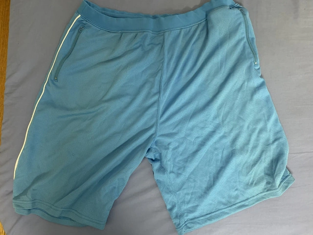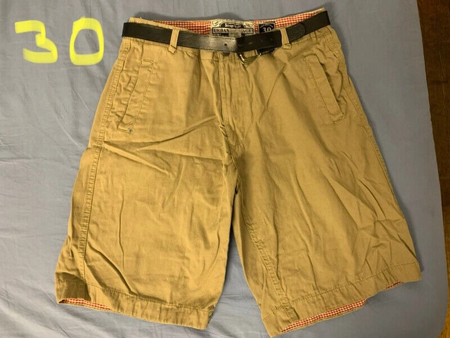 All shorts are unused - $5 each. If you see a belt attached (they are removable), you get the belt also. Look at the top left of the picture for waist size. Please refer to the pictures to see what is left. Size 28-30 is small. Size 32-34 is medium. The last 2 images, I have multiple blue shorts (5-6 pairs left), these were never used yet. Good for wearing indoors and some also works for swimming. Due to cheap price, I only can do pickups, sorry!