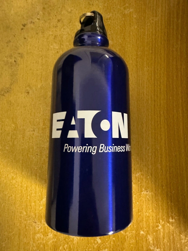 Brand new, never used in packaging. Stainless steel water bottle that stores 500mL of liquid. Good for everyday use and easy to wash and clean. Also great for fans of Eaton or people in the construction or electrical engineering fields!