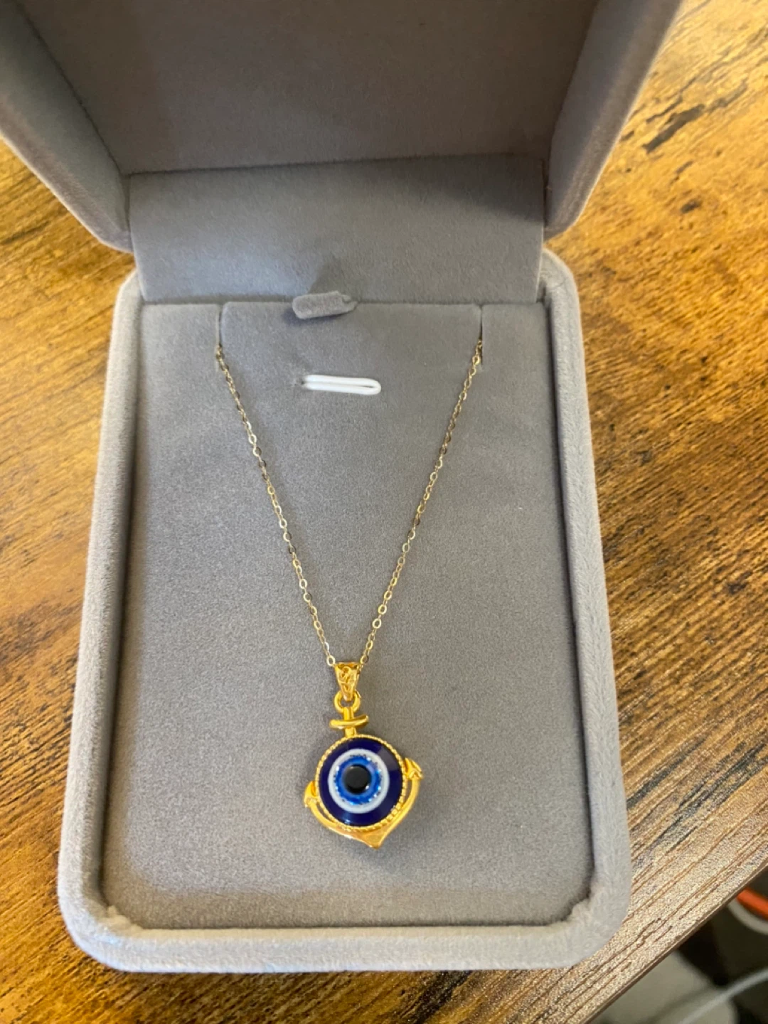 Beautiful real 18K gold necklace with a striking Evil Eye anchor pendant.