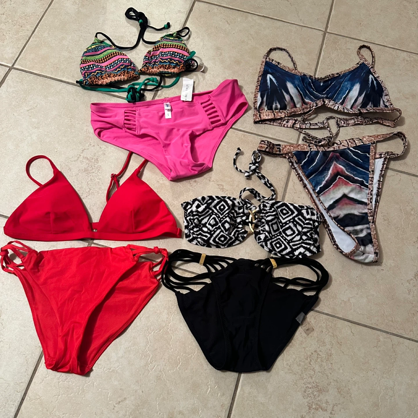 3. The boho theme top is gently loved, highlighter pink bottoms are new never worn