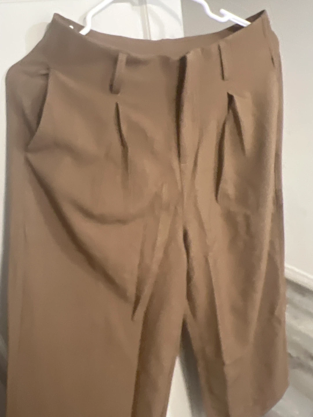 Brand new pair of wide leg trousers in a nice brown colour. Really nice quality and fabric. Love them tbh, just not tall girl friendly so doesn’t fit