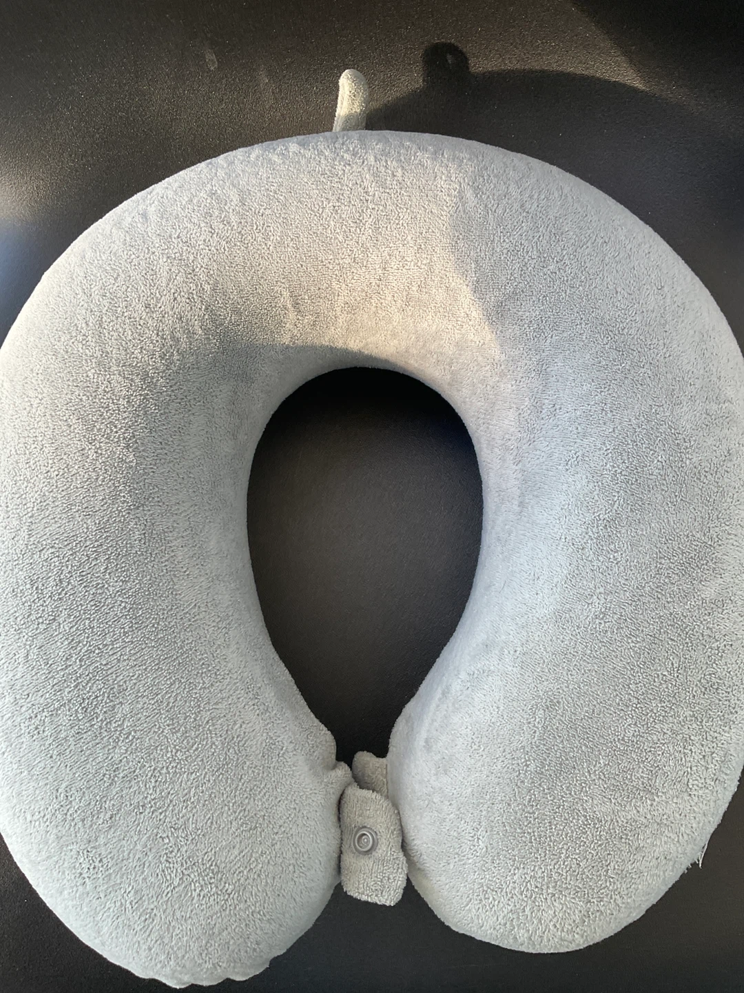 Selling a gray travel neck pillow! It's in great condition and ready for your next trip. Perfect for providing comfort and support while you travel, whether it's on a plane, train, or car